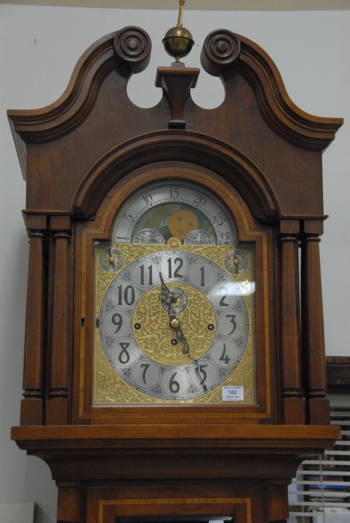 Lot 162: Cherry tall case clock with broken arch top,