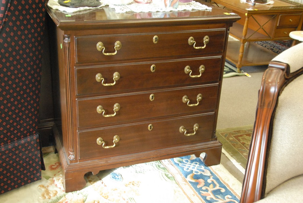 Ethan Allen dark cherry four drawer Chippendale style chest, ht. 31, top: 17 x 32.