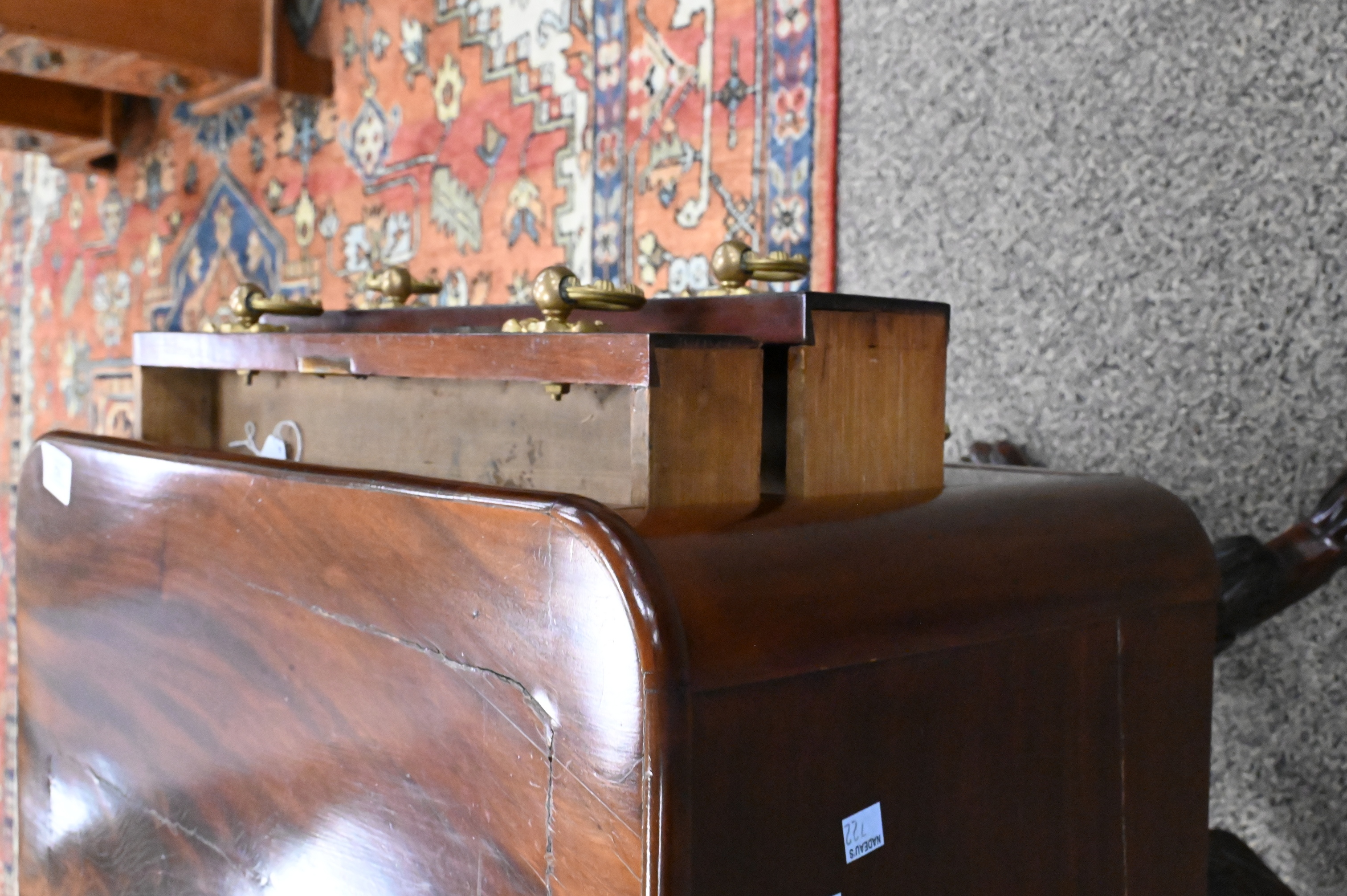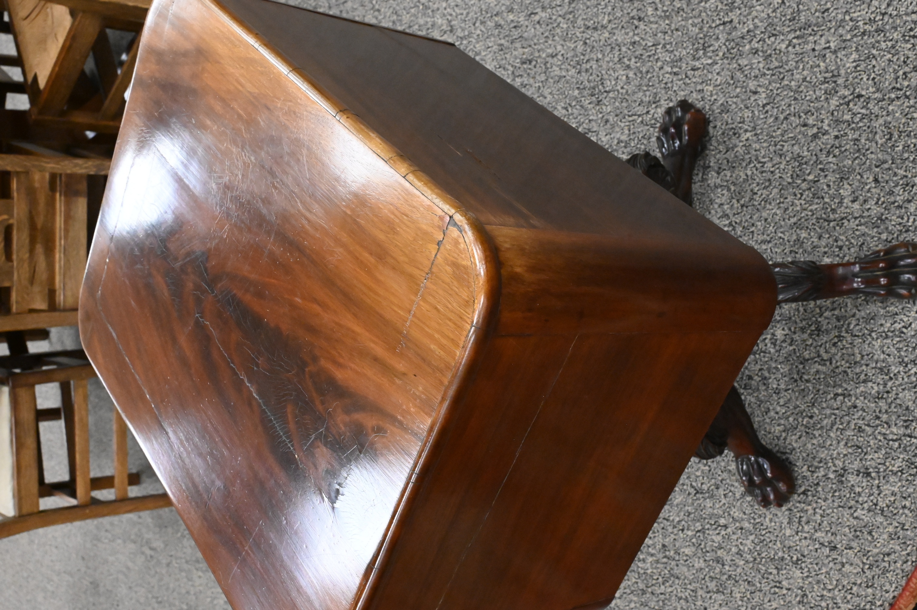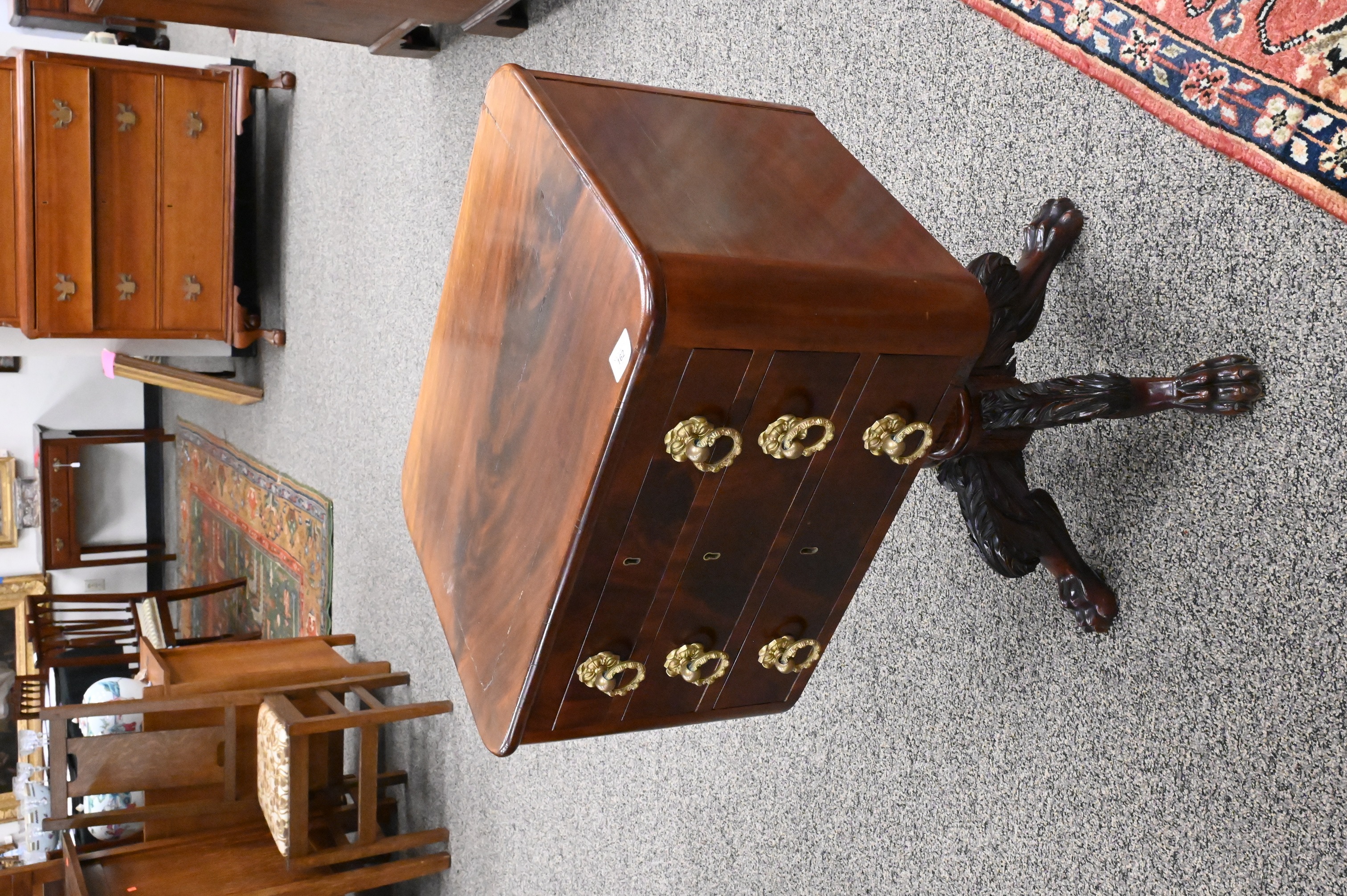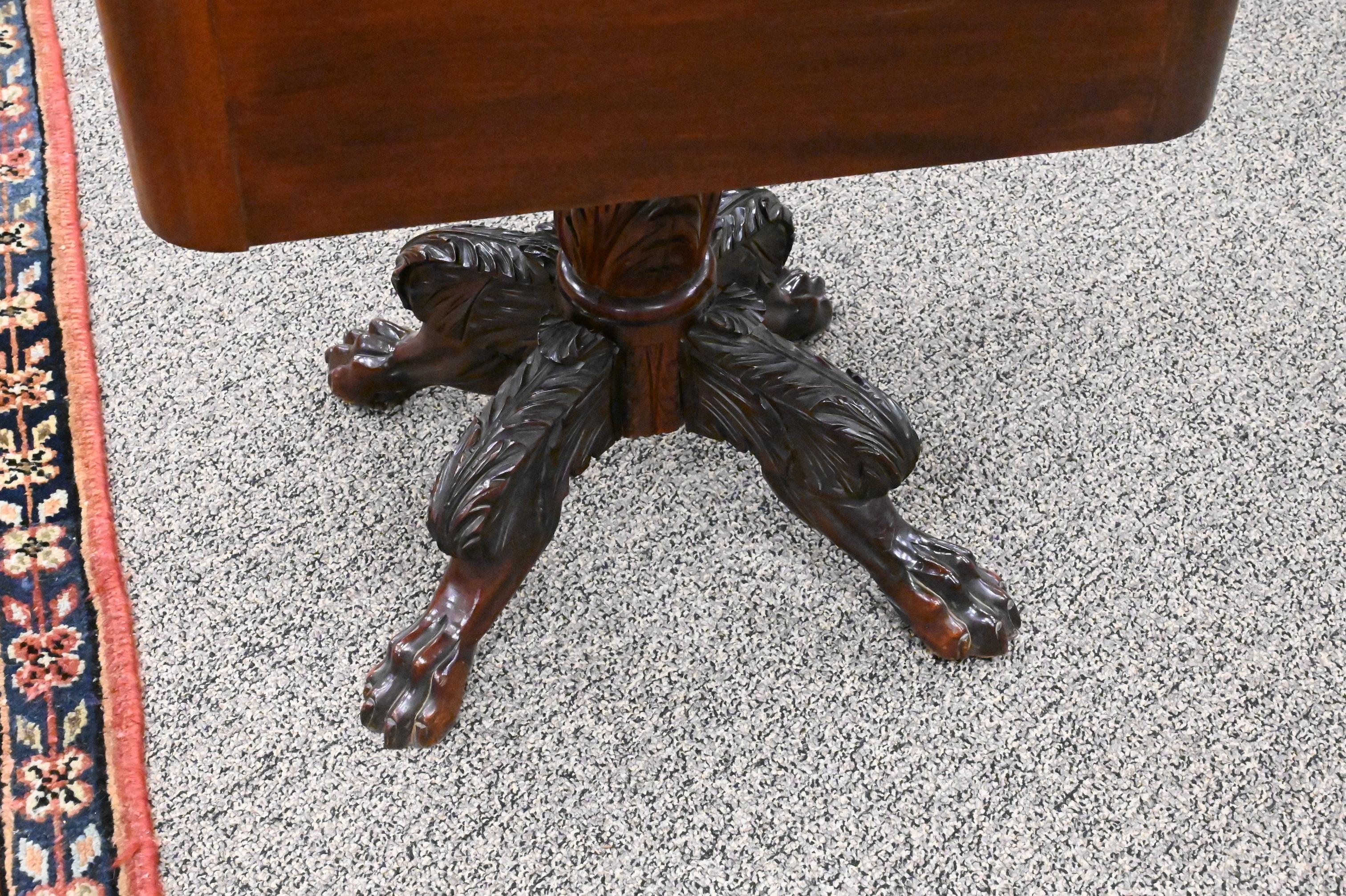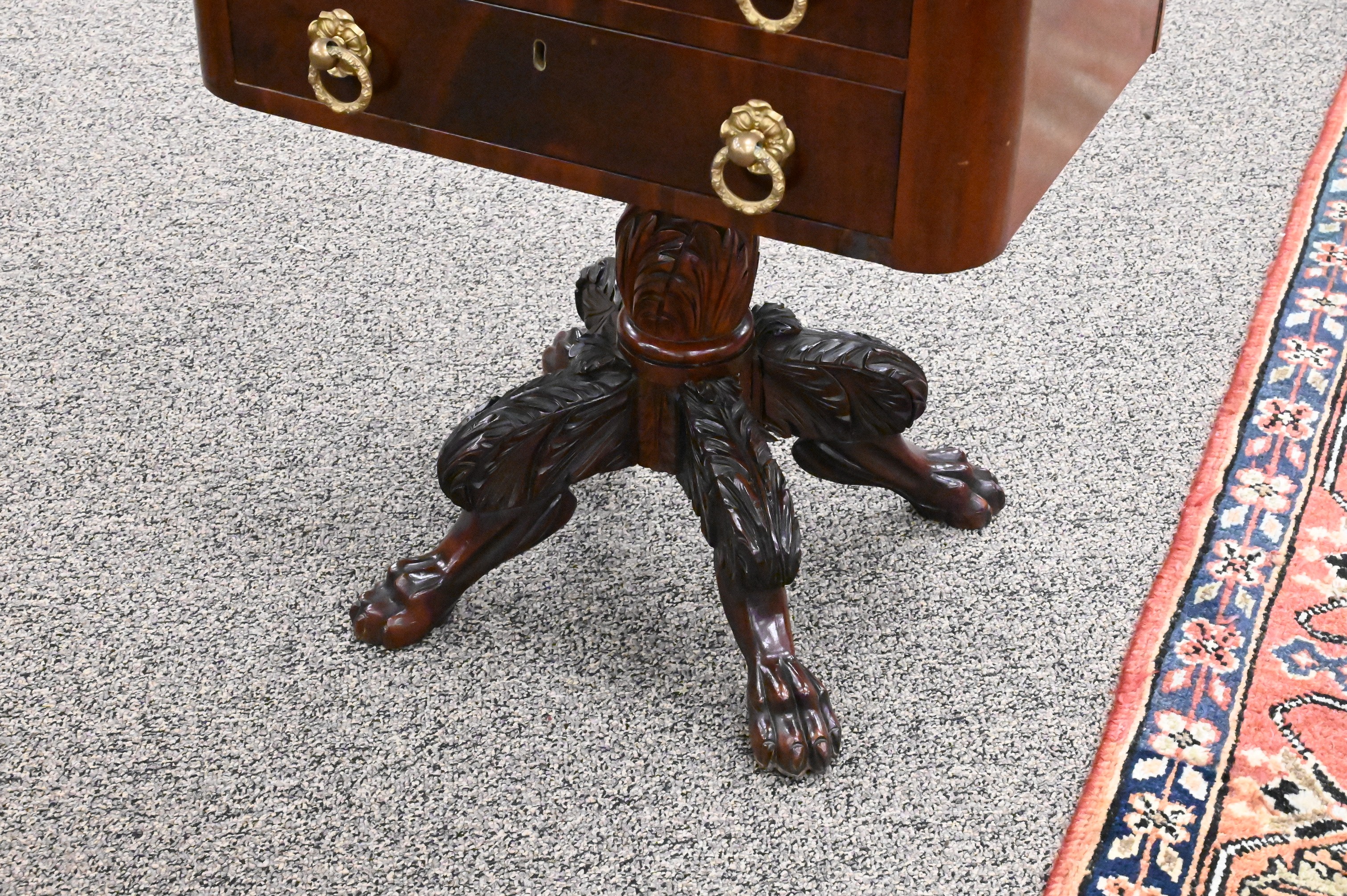 having carved pedestal and paw feet, drawer pulls are embossed brass, circa 1820