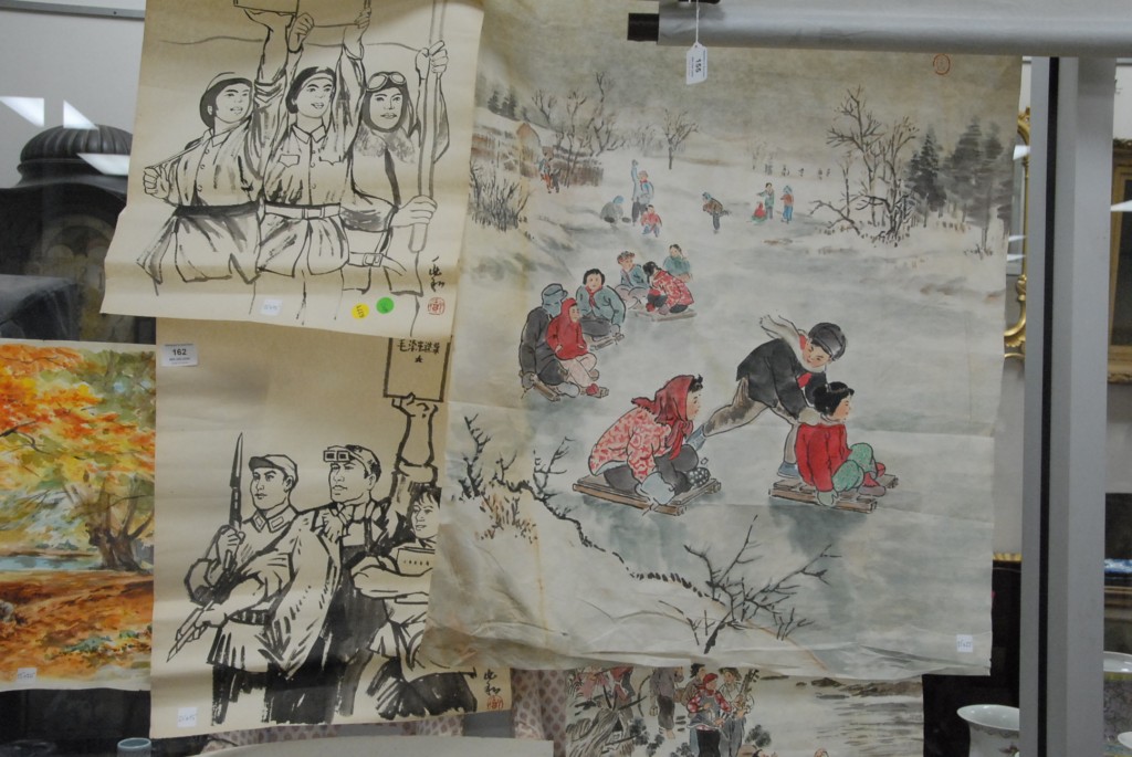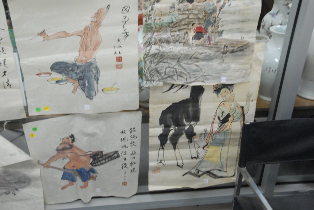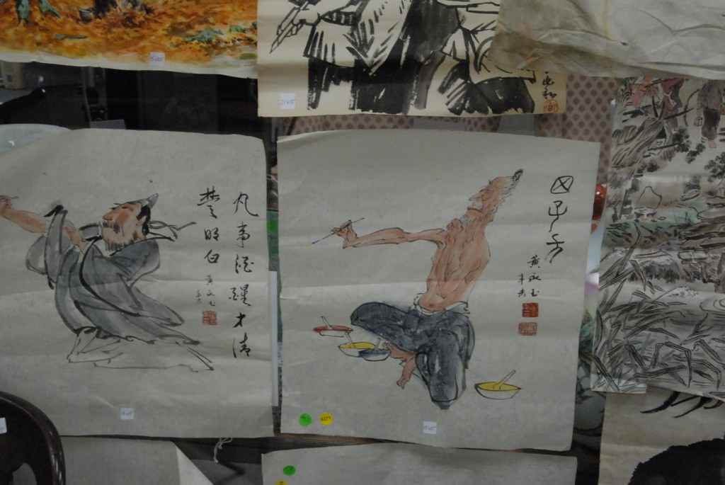 Group of ten Oriental watercolors on tissue paper, 37 x 27 through 18 x 17.