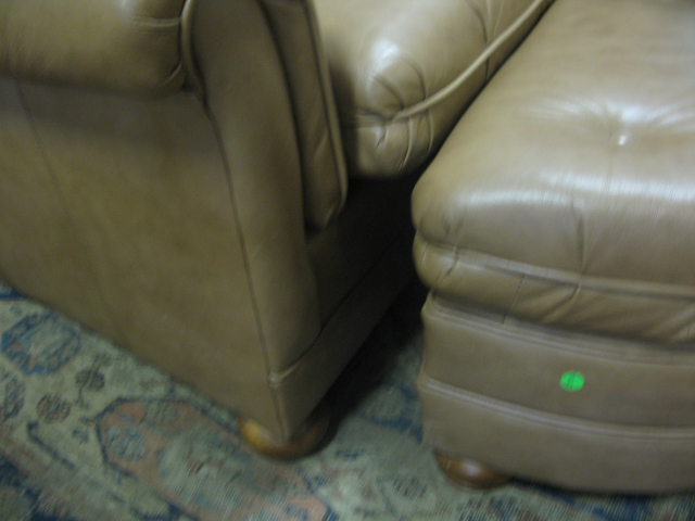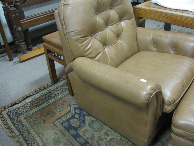 Leather easy chair and ottoman with a reclining back, Saybrook Country Barn manufactured by Alexander Taylor