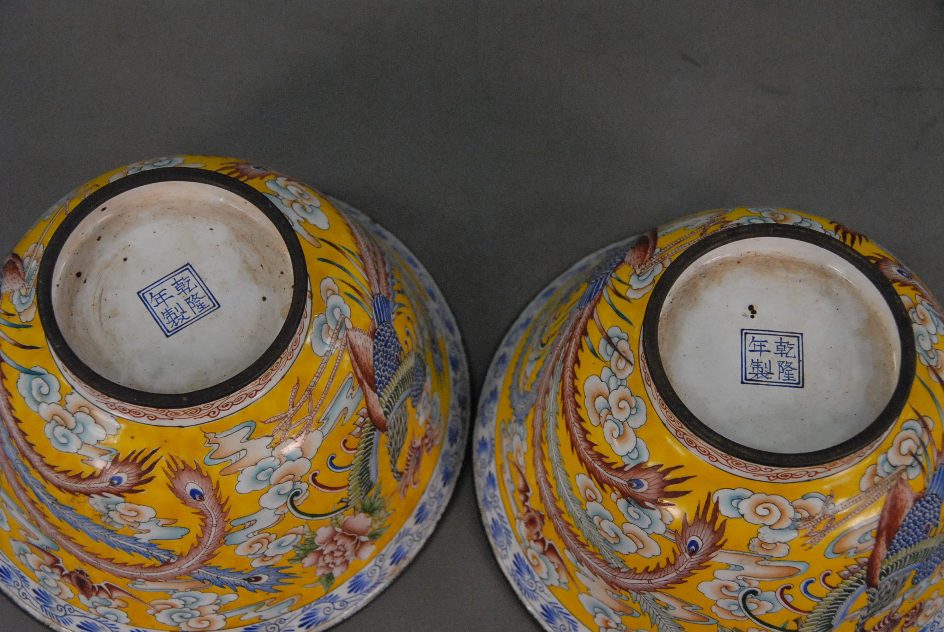 Lot 162: Pair of enameled phoenix bird bowls each having