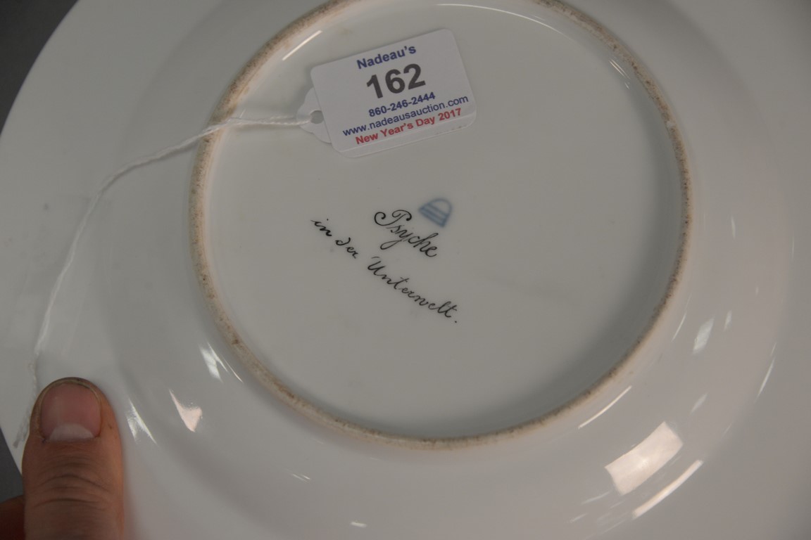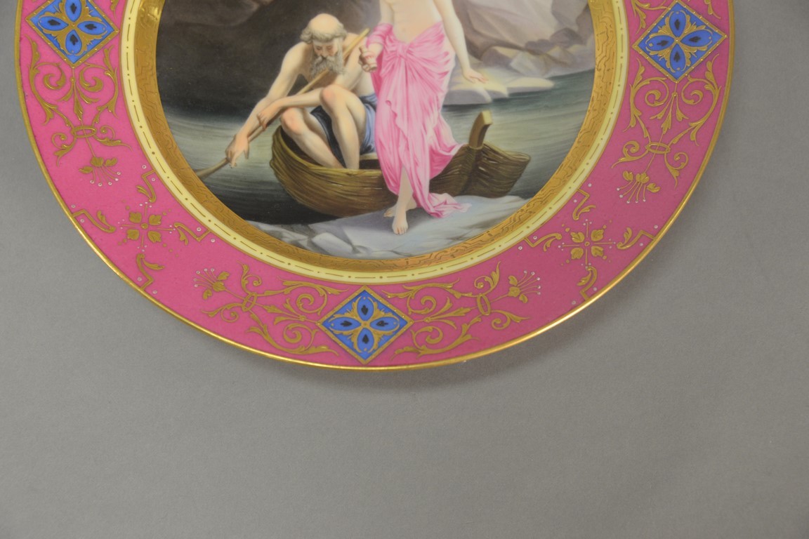 Lot 162: Royal Vienna Porcelain cabinet plate Psyche, 19th century, pink border with heavy gold relief decoration and hand painted scene wi…