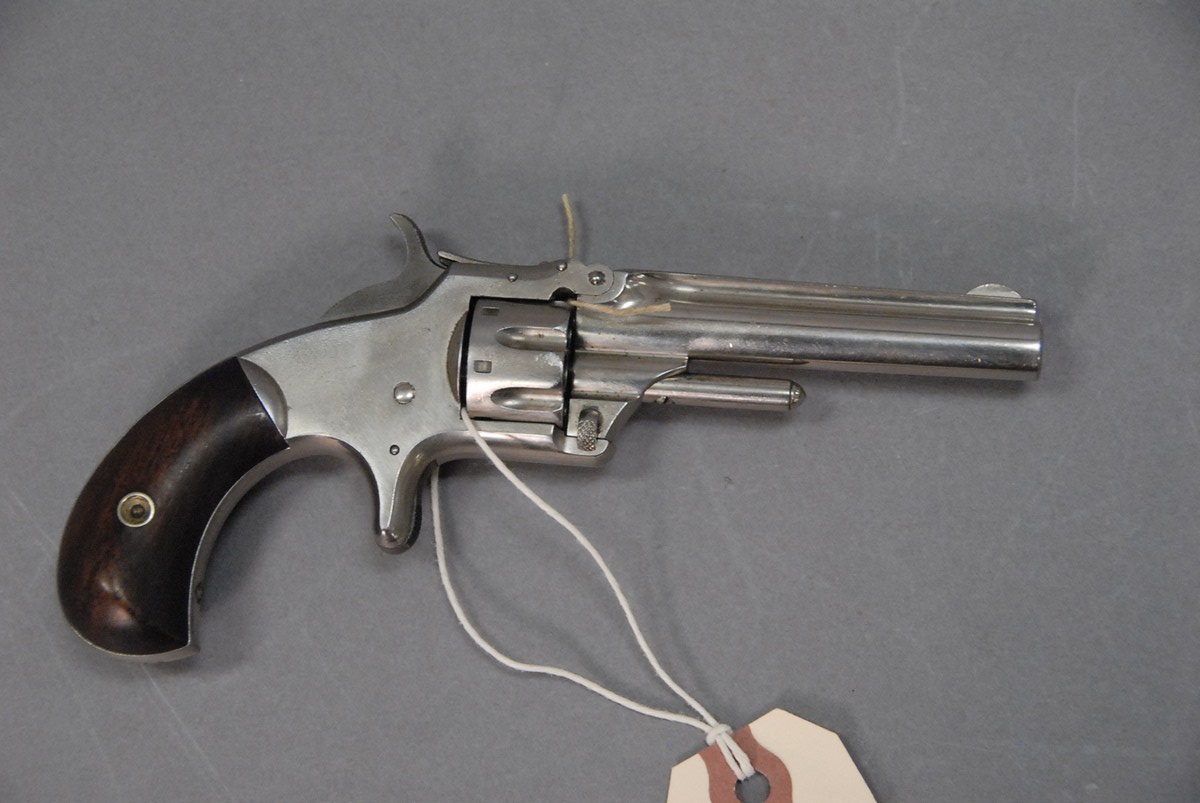 Smith & Wesson model 1 revolver, 3rd issue, .22 caliber, nickel plated, 3 1/4 barrel. 195 Sn-928014