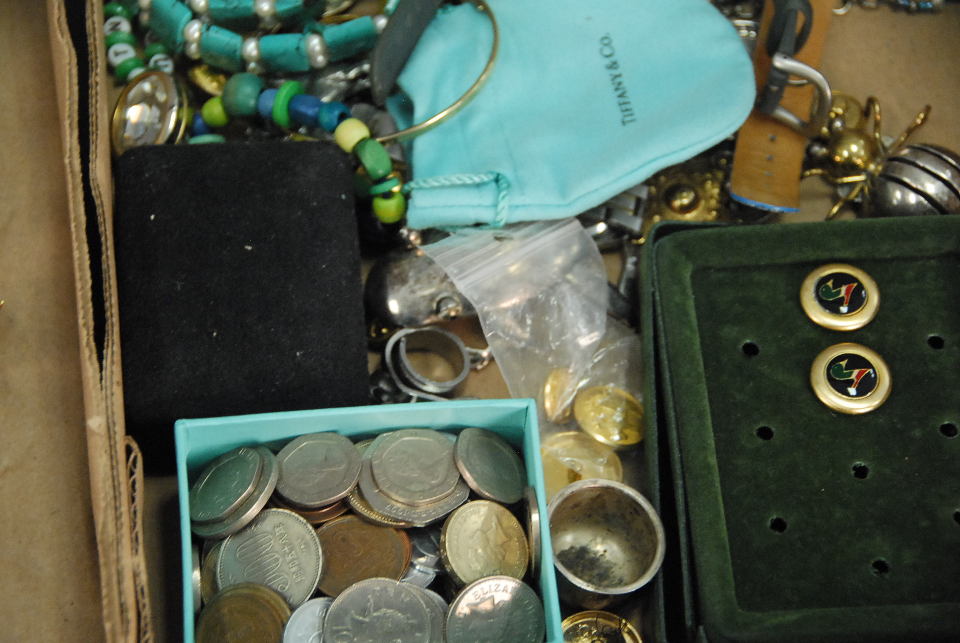 Two box lots of jewelry to include Wegner, Yves Bertelin, Fossil, Skagen, woman’s watches, Laton sterling, Spyder coins, silver frog, napkin rings, etc.