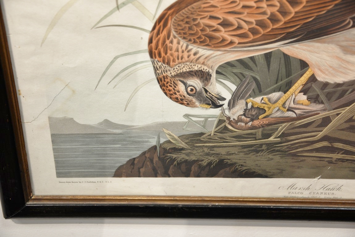Lot 163: After John James Audubon 1785-1851 MARSH HAWK FALCO CYANEUS Male Adult 1, Female Adult 2, Young Male 3 Cyaneus engravin…