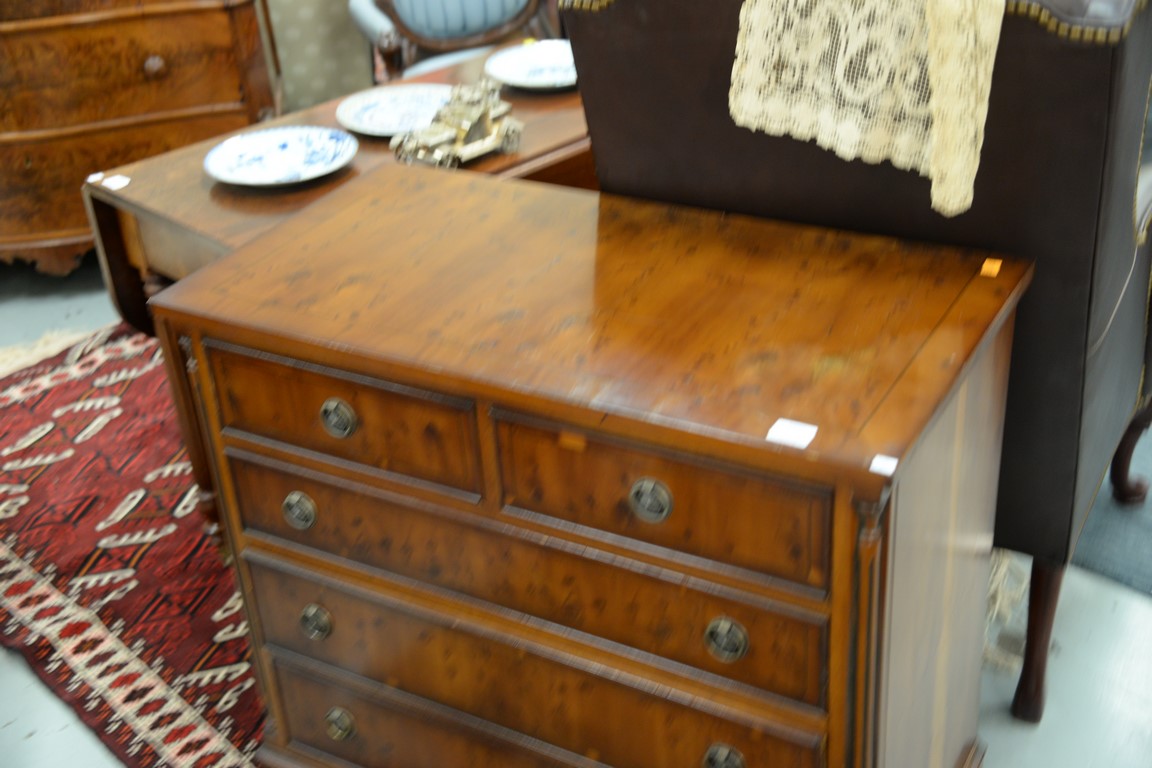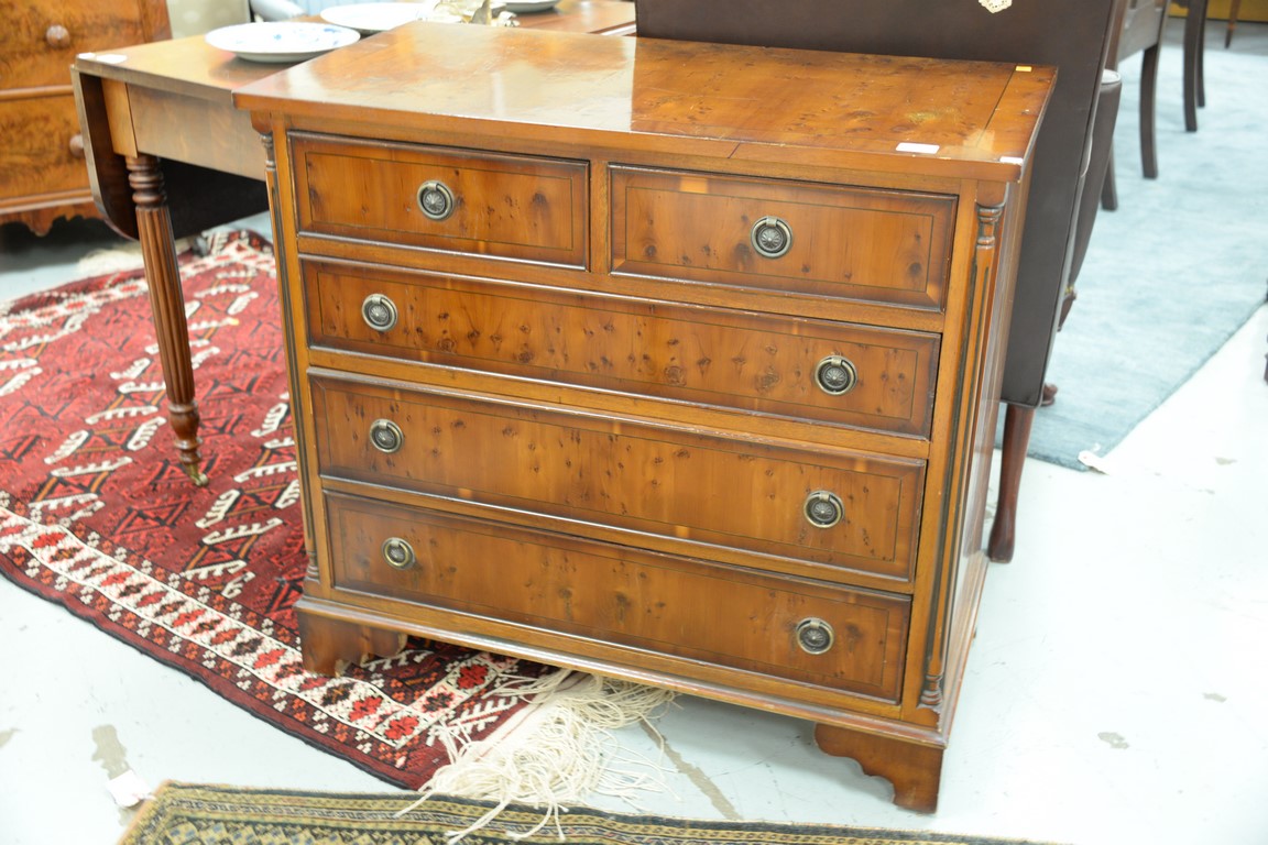 Burlwood chest. ht. 32 in. wd. 34 in. dp. 17 in.