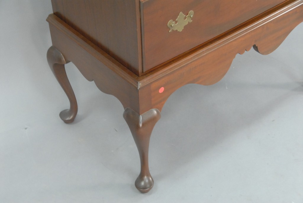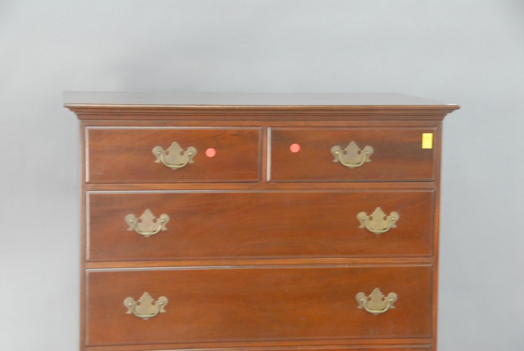 Lot 163: Custom mahogany chest on frame attributed to Whitmore, Middletown, Connecticut, ht. 58, wd. 33.