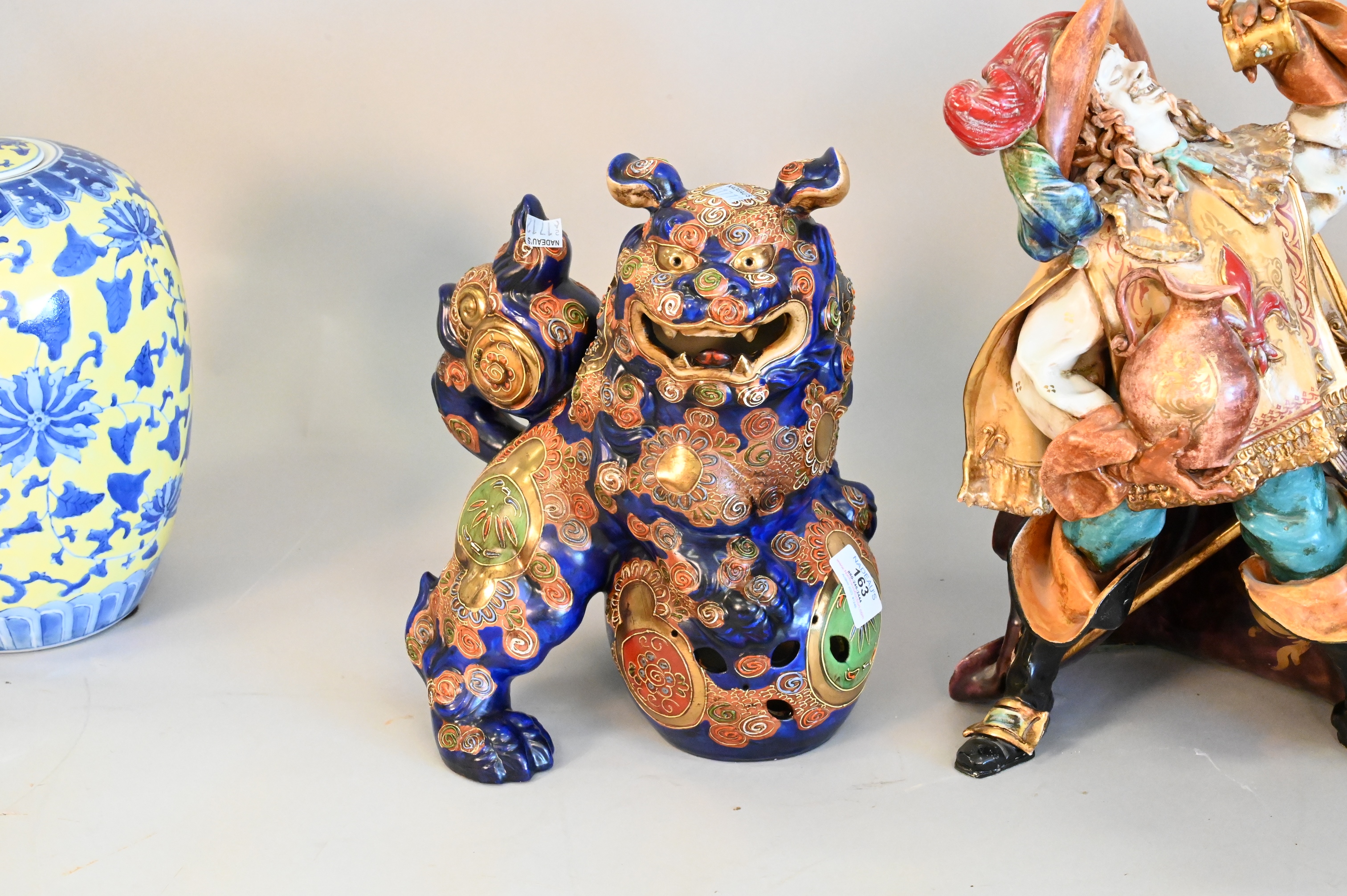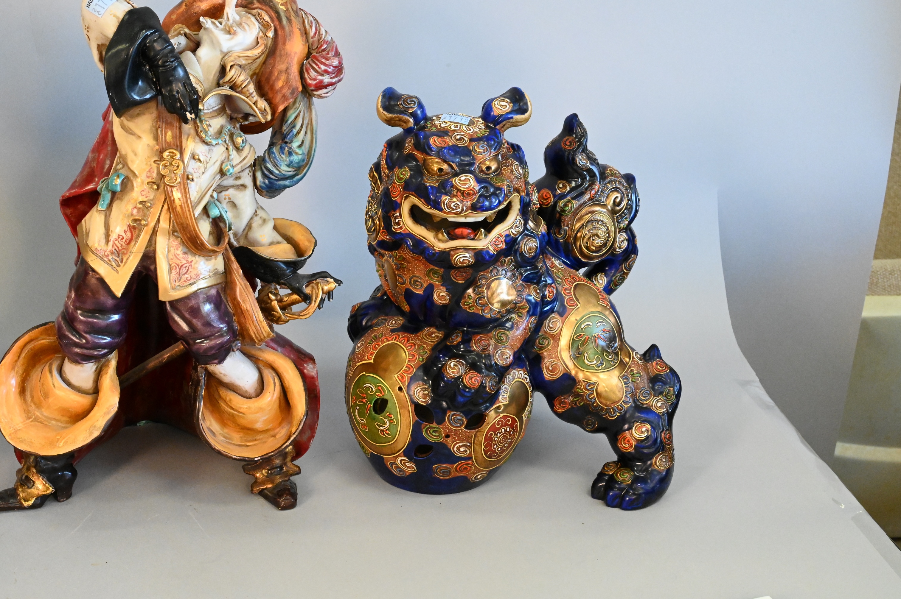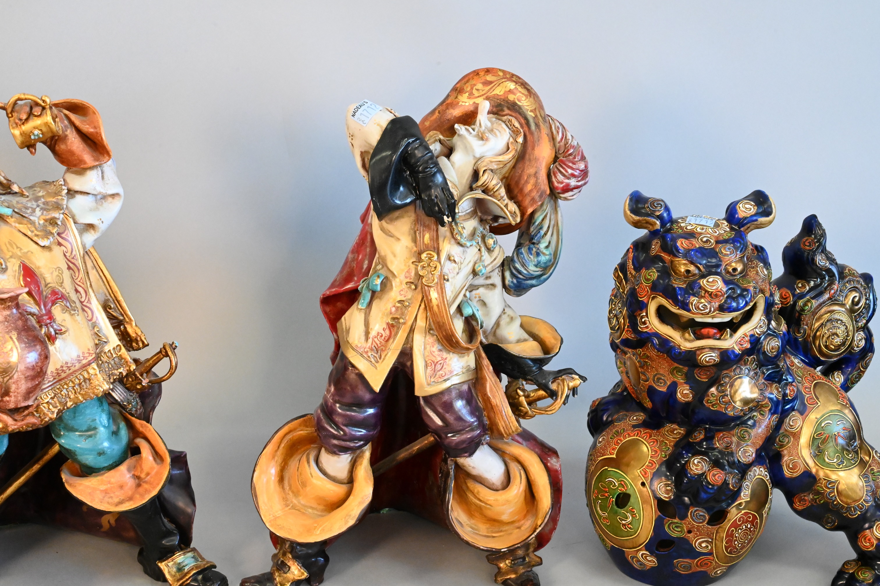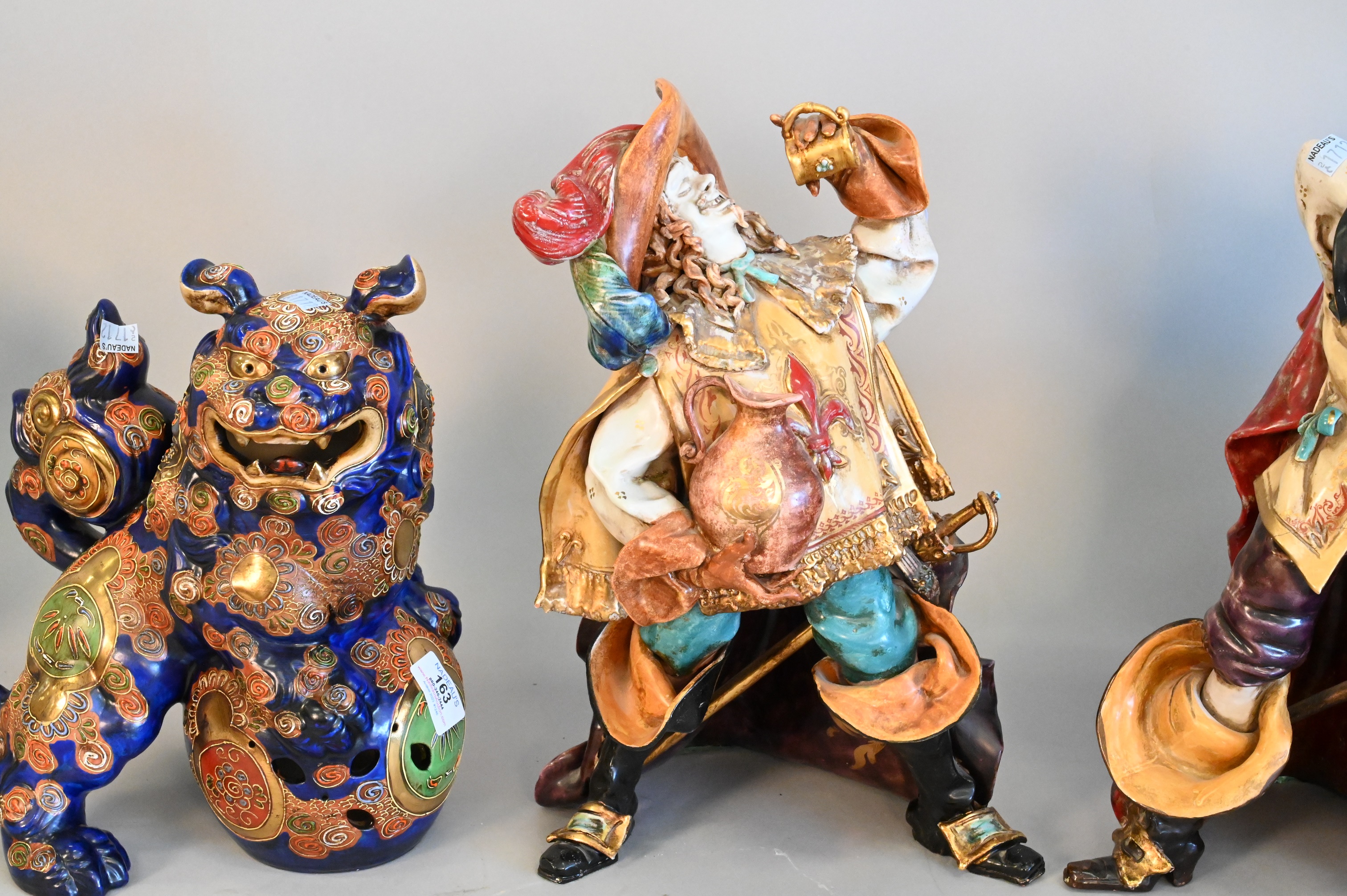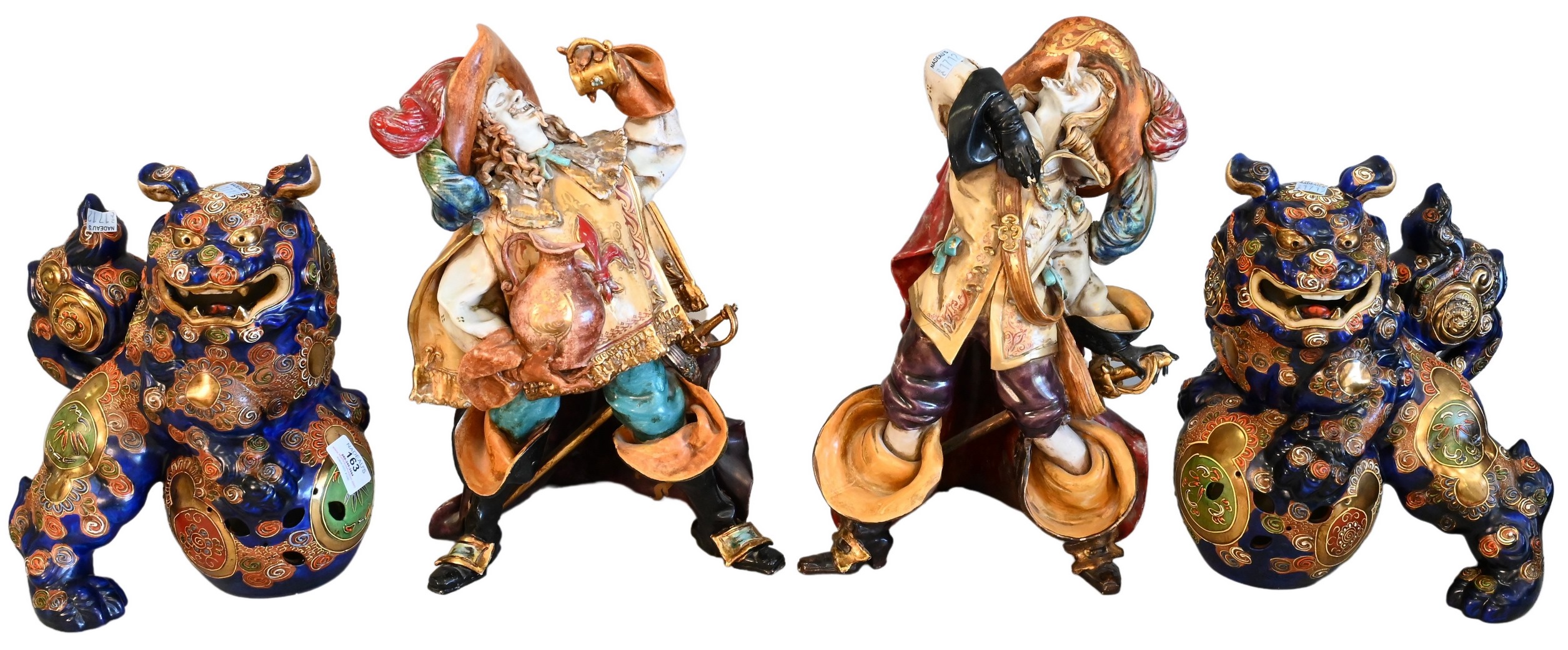 Four Piece Figural Ceramic Group, to include a pair of Japanese Foo dogs (height 12 1/2 inches), and a pair of standing figures (height 15 inches)