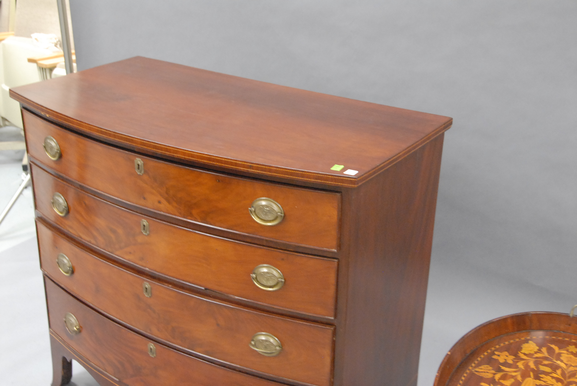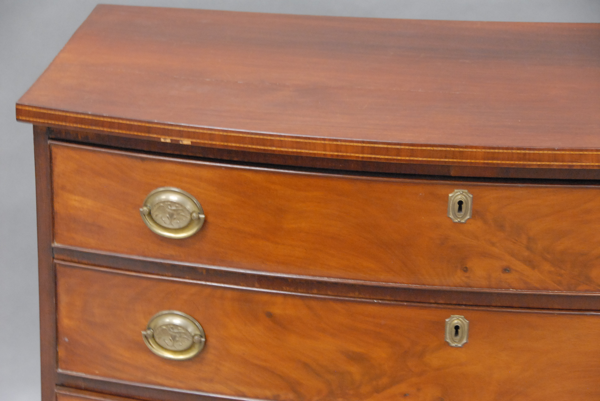 Hepplewhite Federal mahogany four drawer bow front chest.