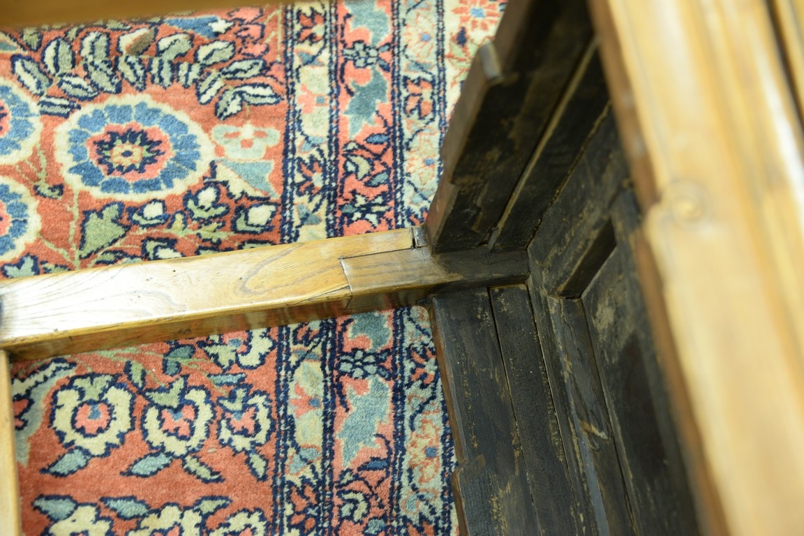 Lot 163: Pair of Chinese hardwood stands with square burl wood center inset panels. height 19 inches, top: 19 x 19