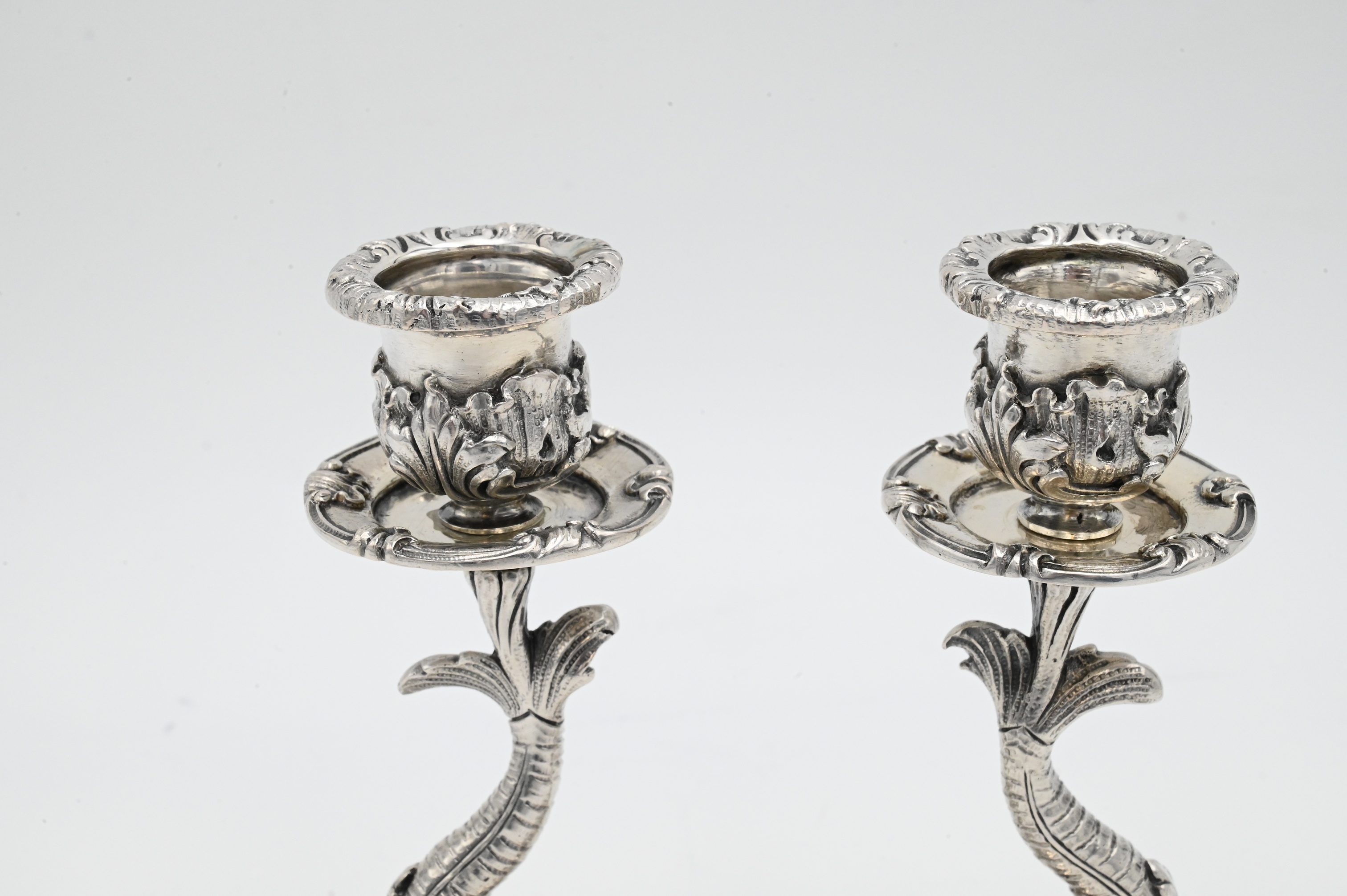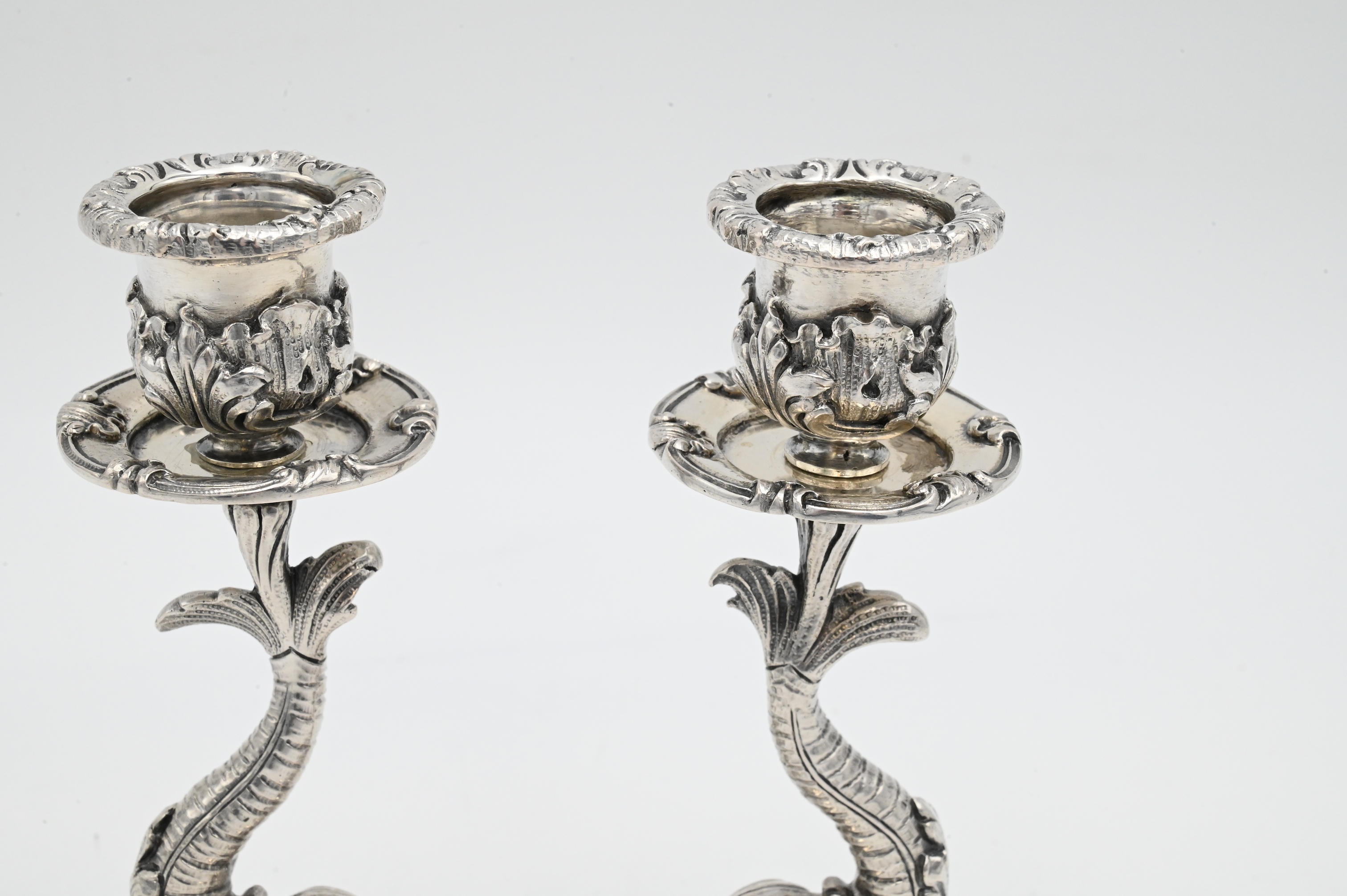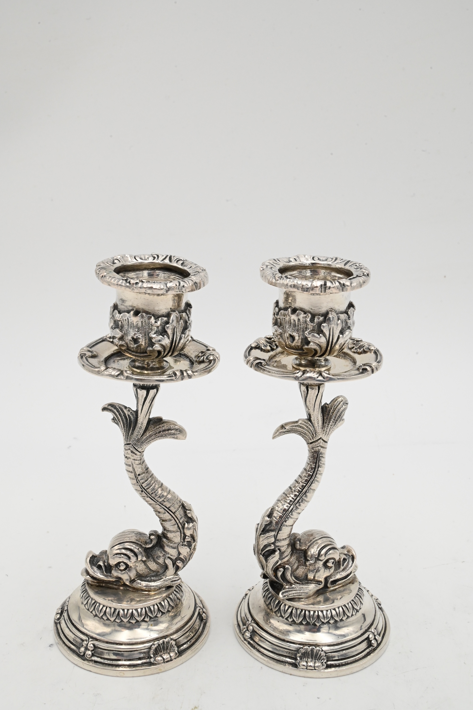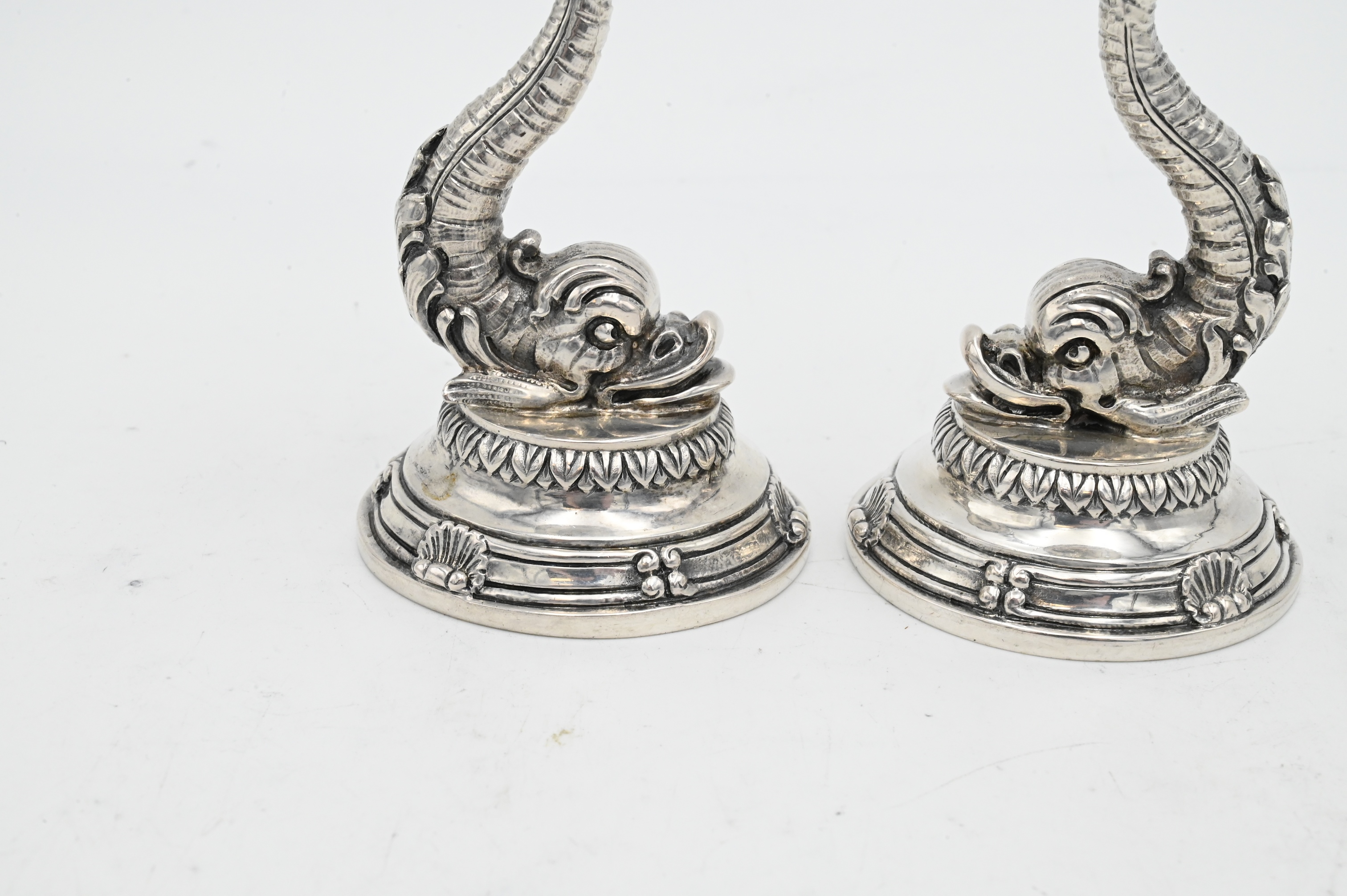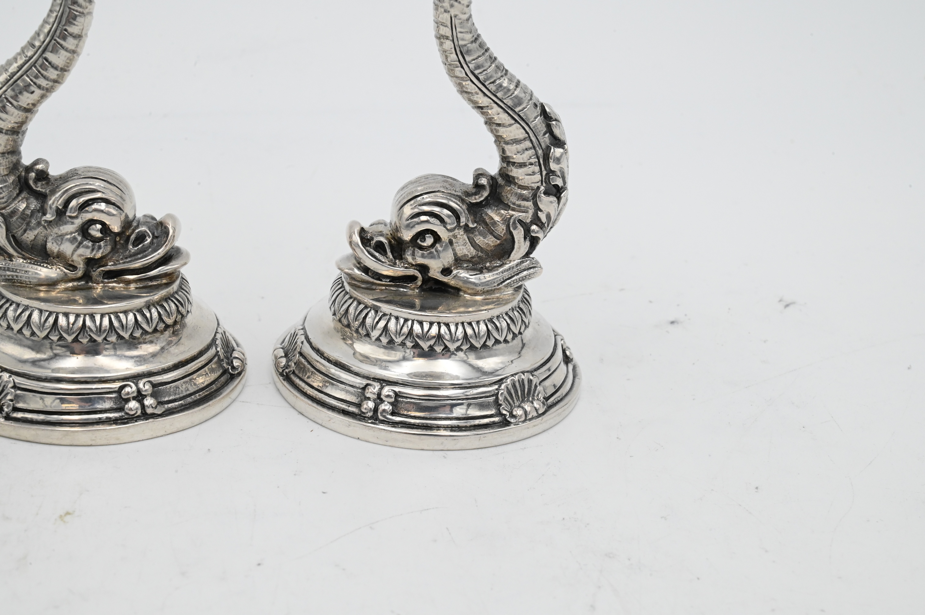 Lot 163: Pair of Italian .800 Standard Silver Dolphin Form Small Candlesticks