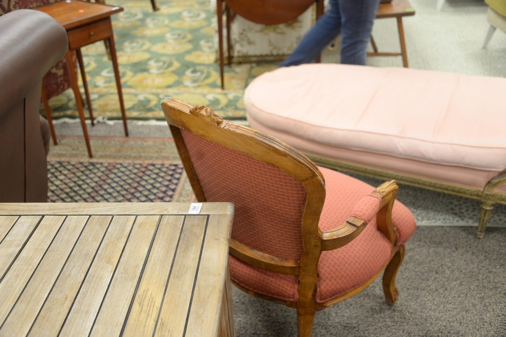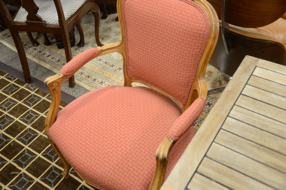 Pair of Louis XV Style Fauteuil, height 37 inches, width 25 inches.