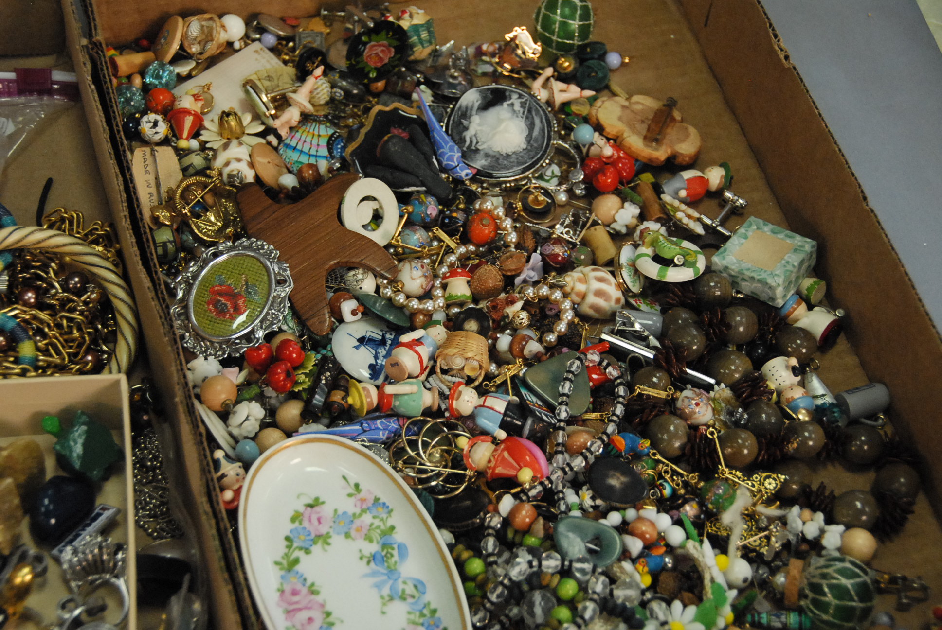 Three box lots of costume jewelry, bracelets, necklaces, pins, etc.