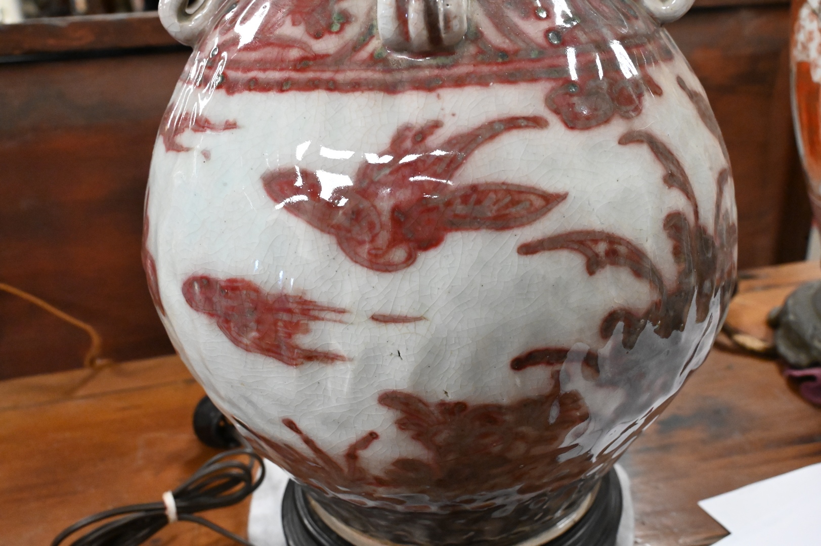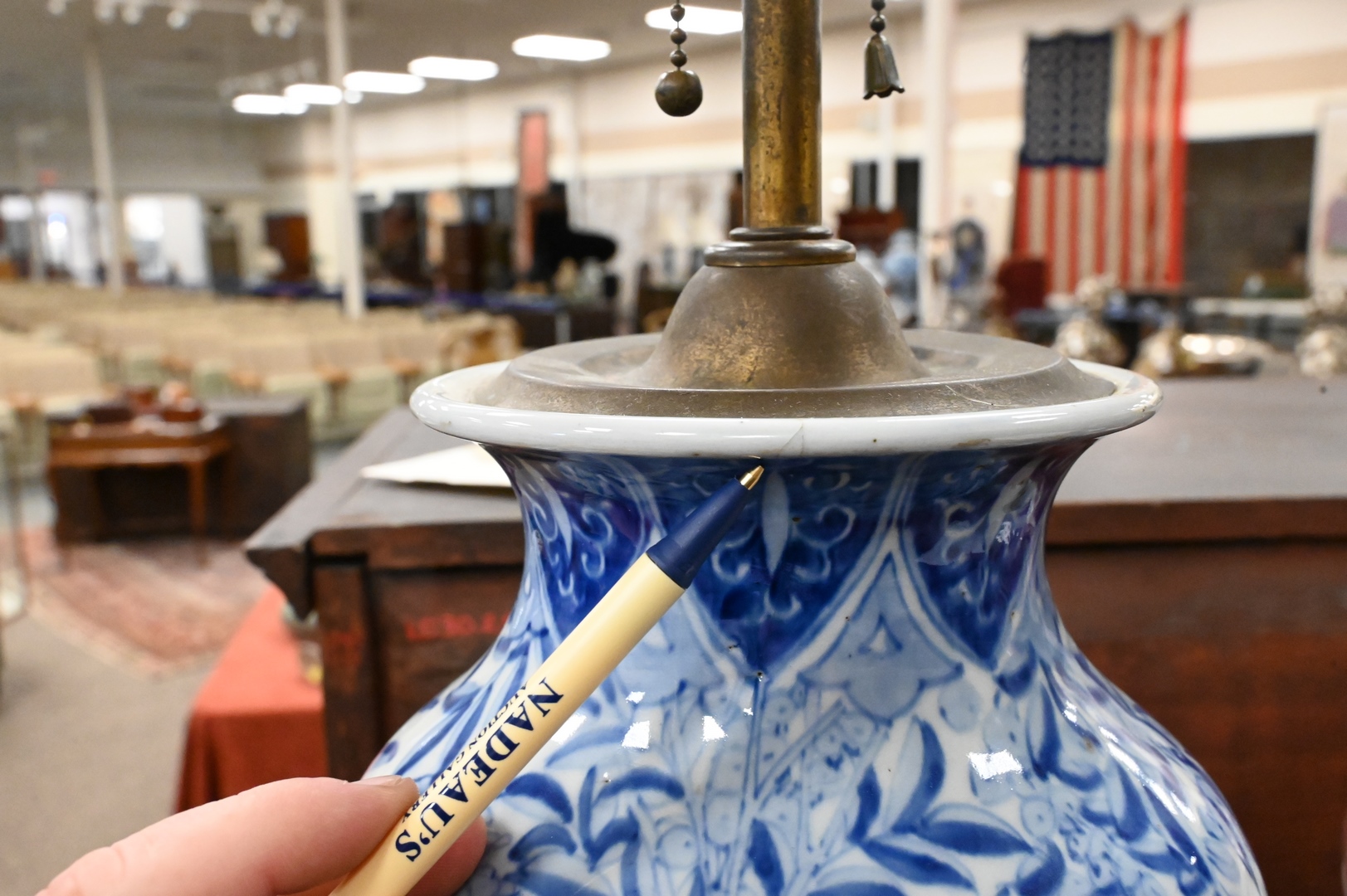 Lot 163: Three Piece Group of Japanese Porcelain, to include a satsuma vase having painted figures, height 11 inches; blue and white lobed vase having painted flowers and birds; along with a white glazed vase having painted birds and blossoming trees.