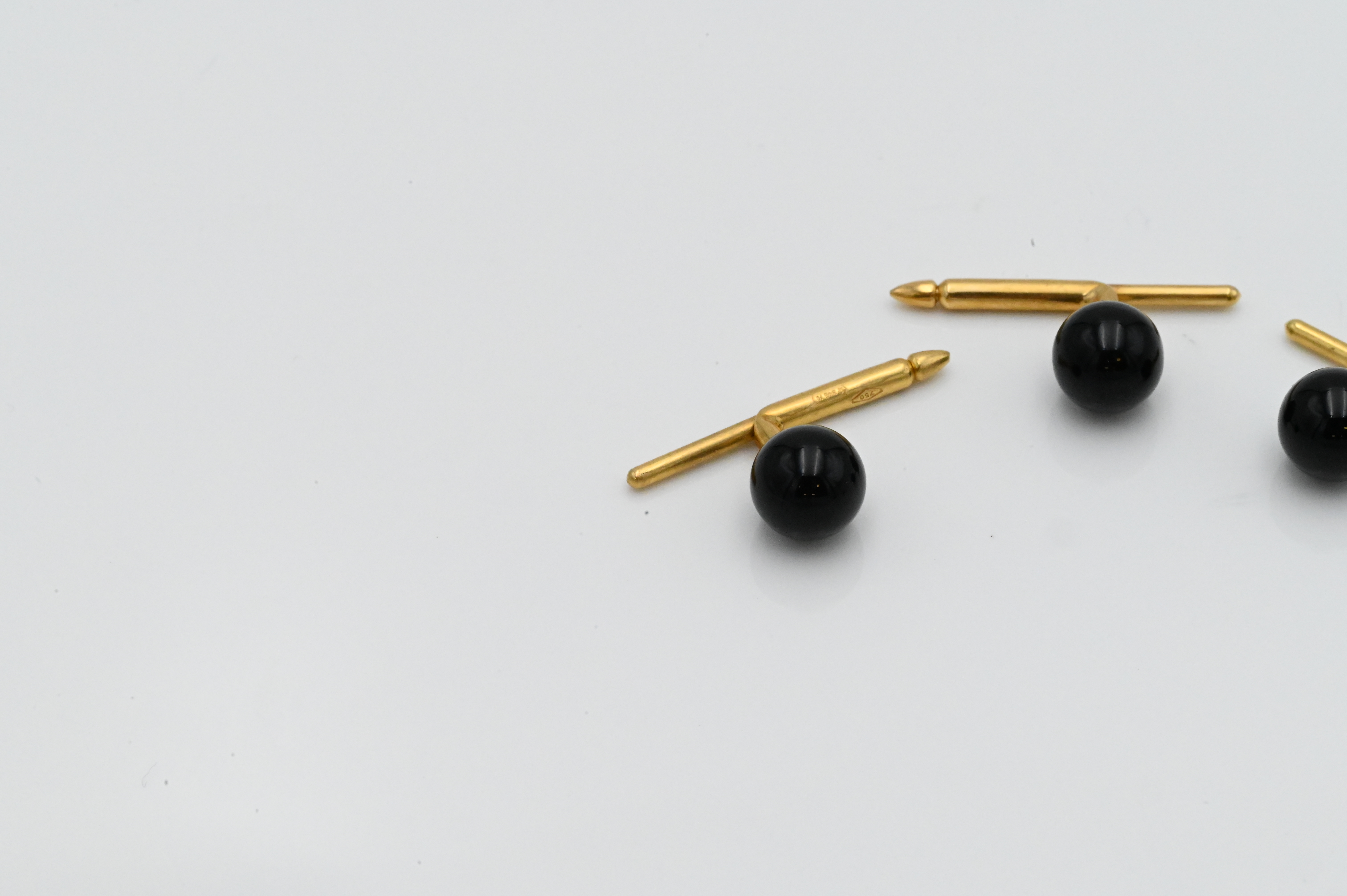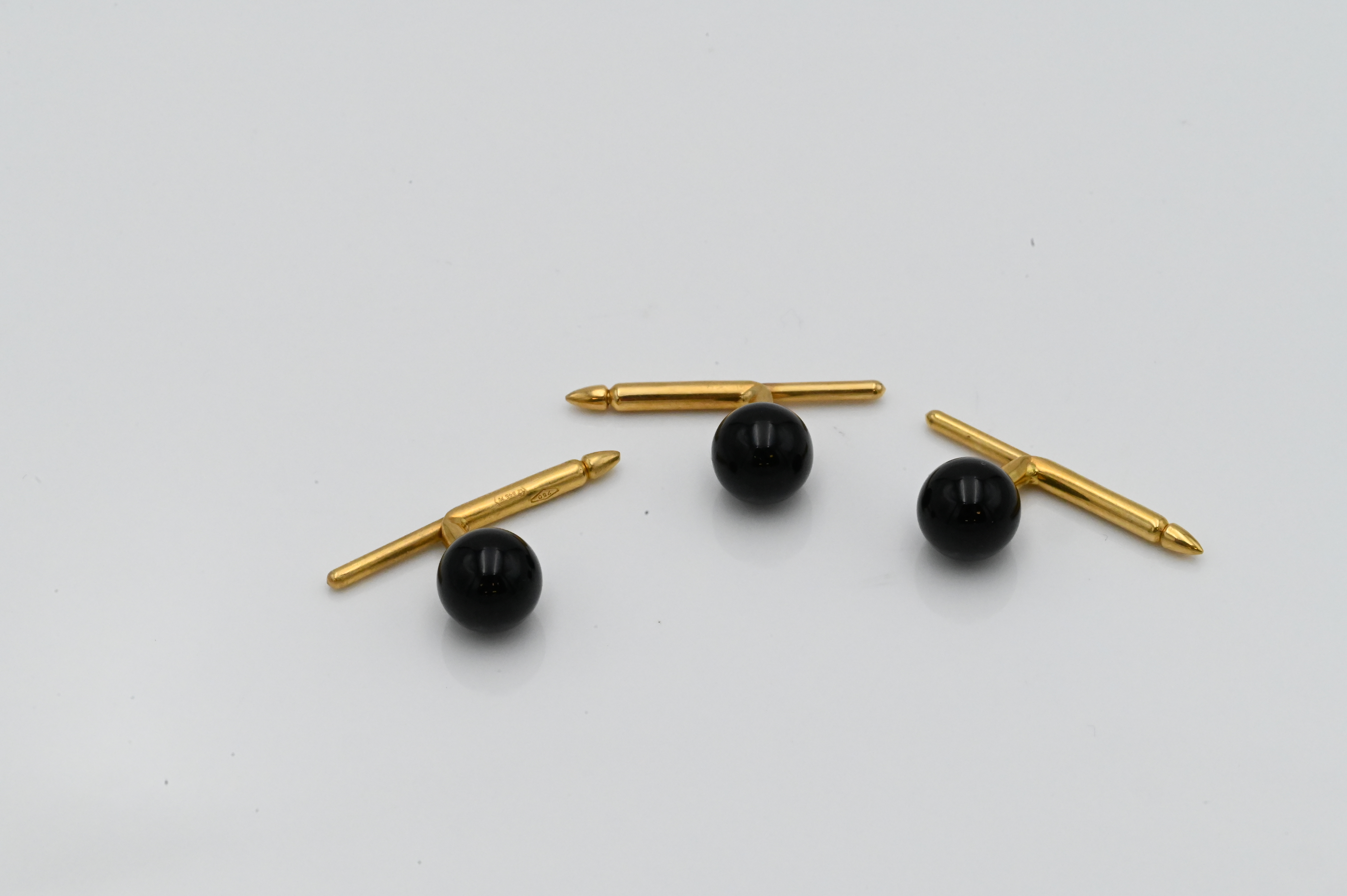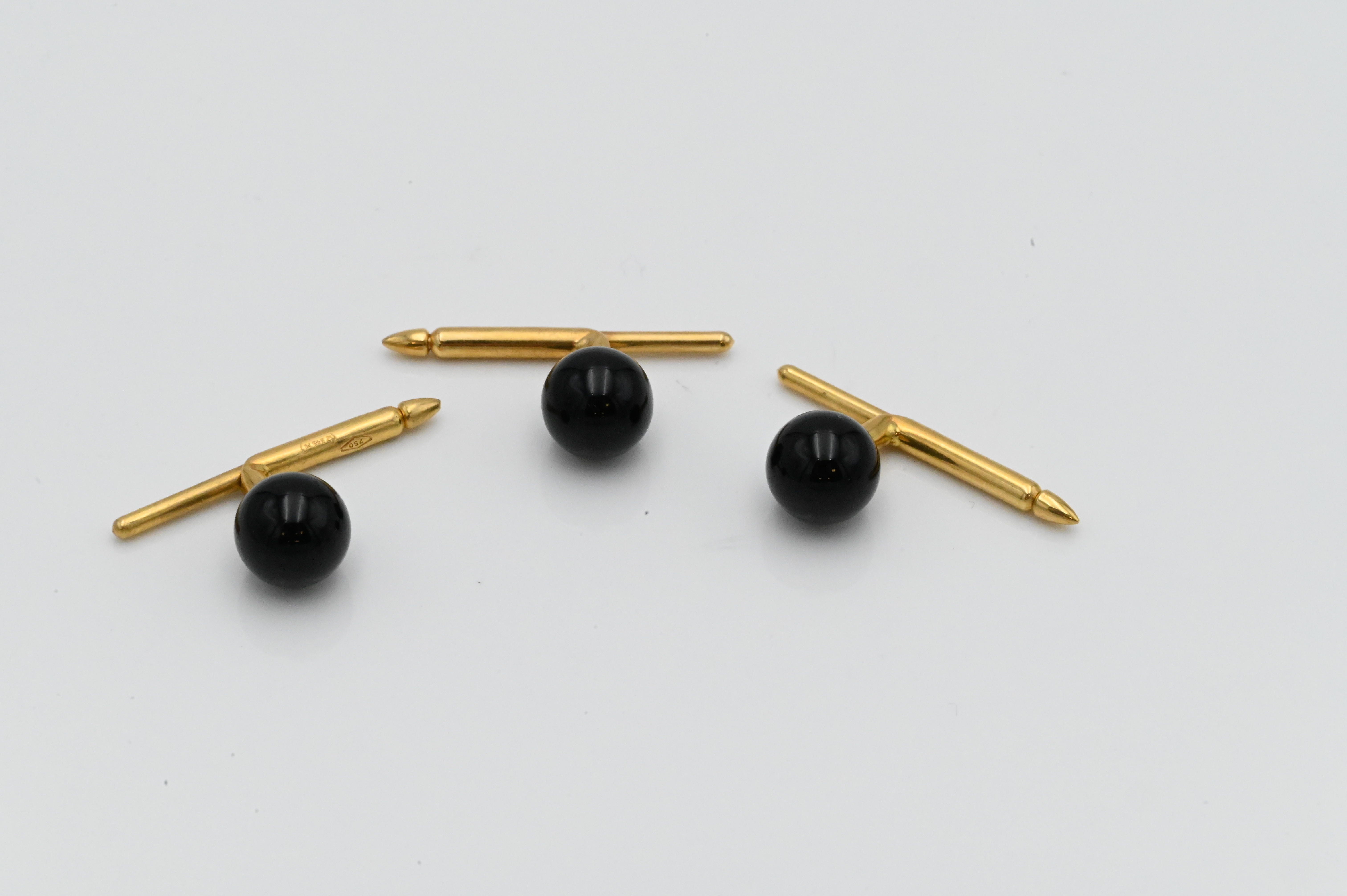 Lot 163: Three Tiffany & Company 14 Karat Gold and Onyx Shirt Buttons