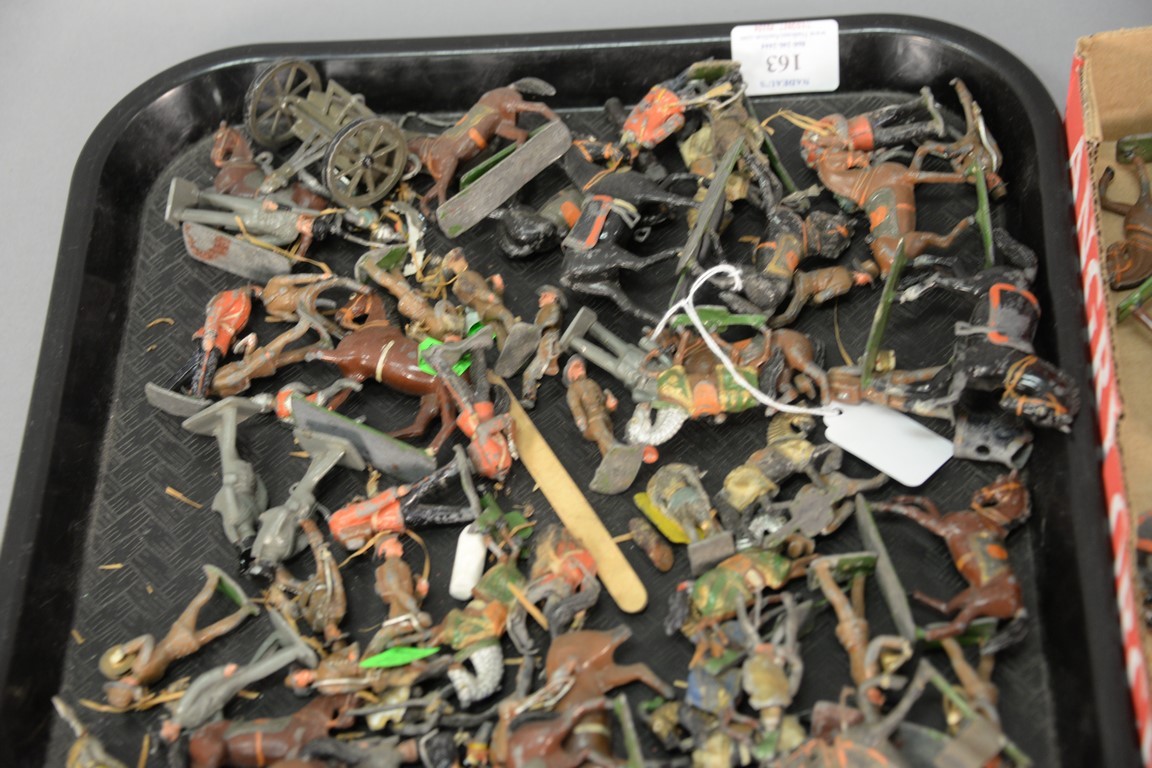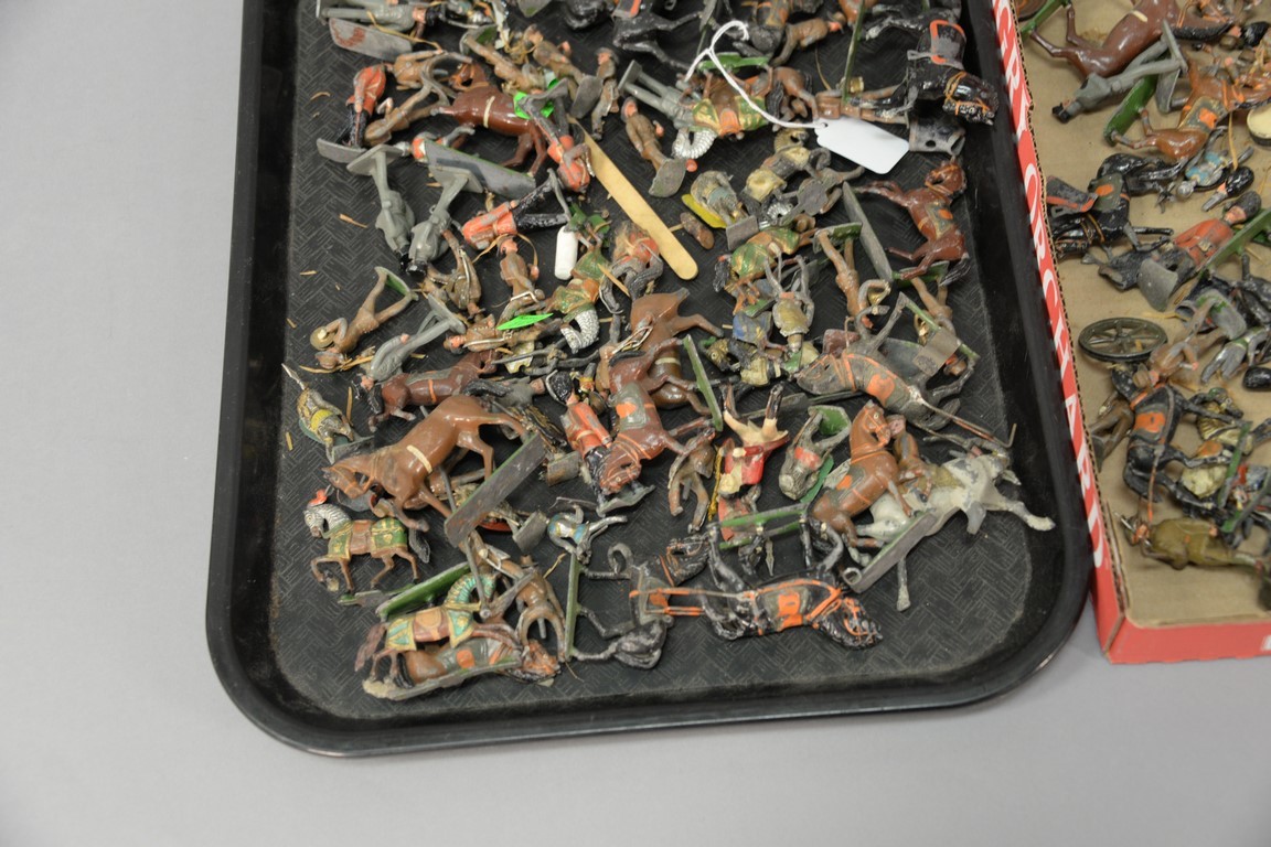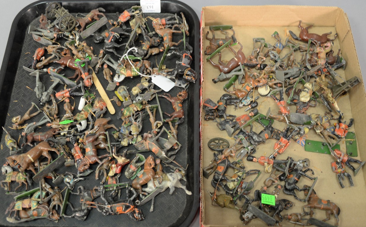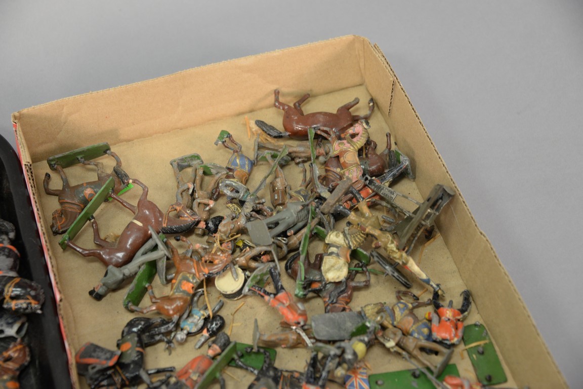Two box lots of lead soldiers and horses.