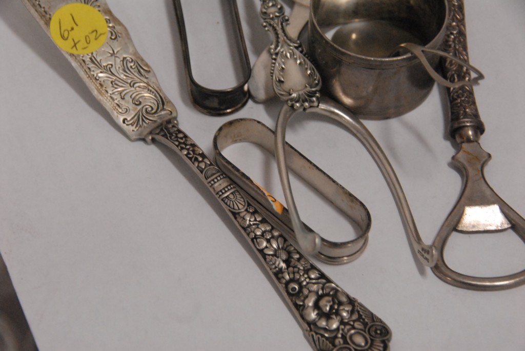 Bag lot of sterling silver master butter knife, napkin rings etcetera, 6.1 troy ounces.