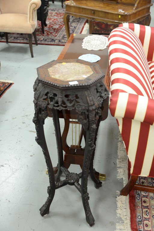 Chinese teak marble top stand. ht. 36 in. top: 13 1/2