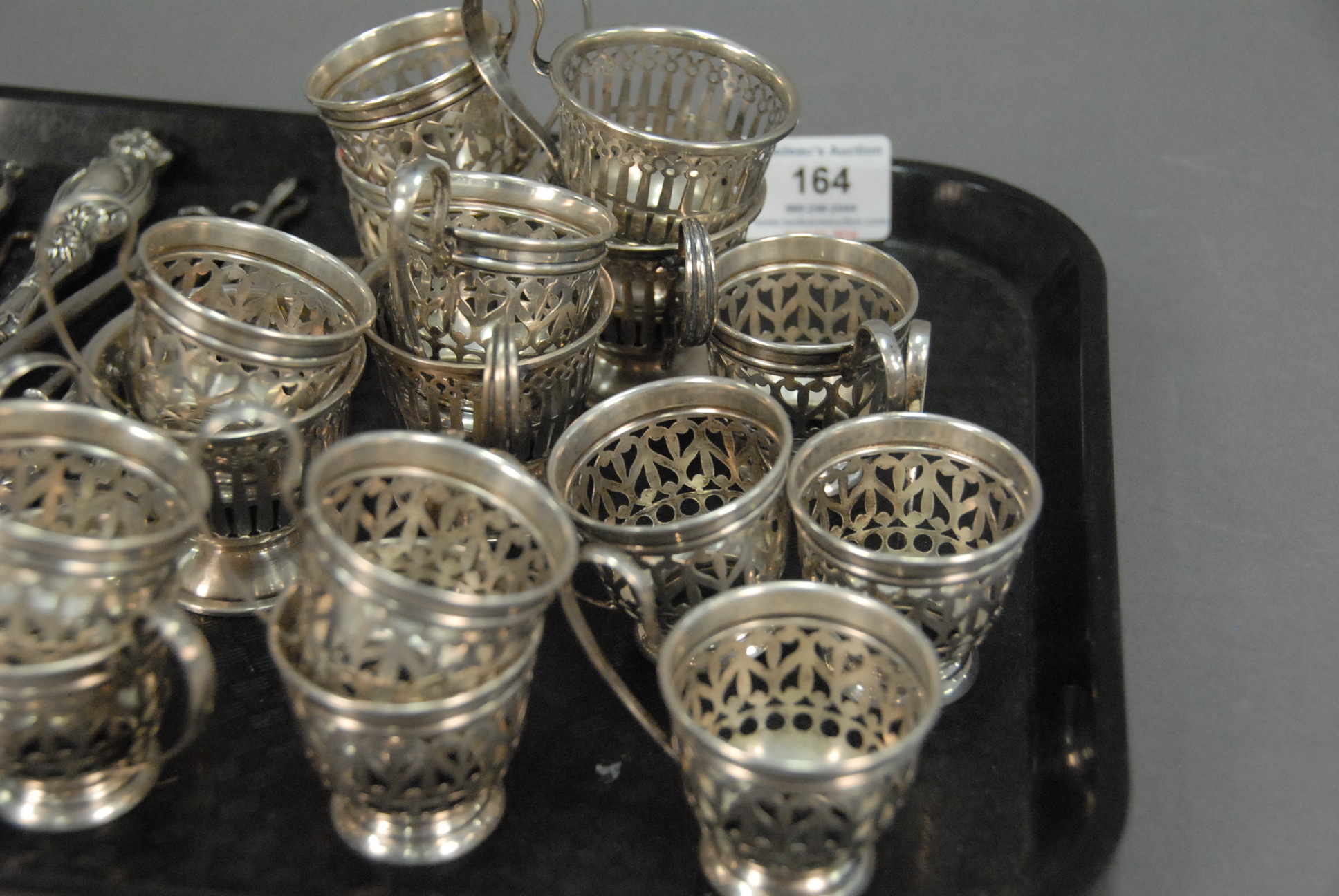 Lot 164: Group of 16 sterling cups without liners, along with 13 weighted handles and weighted brush, 12.8 t oz. weighable silver.