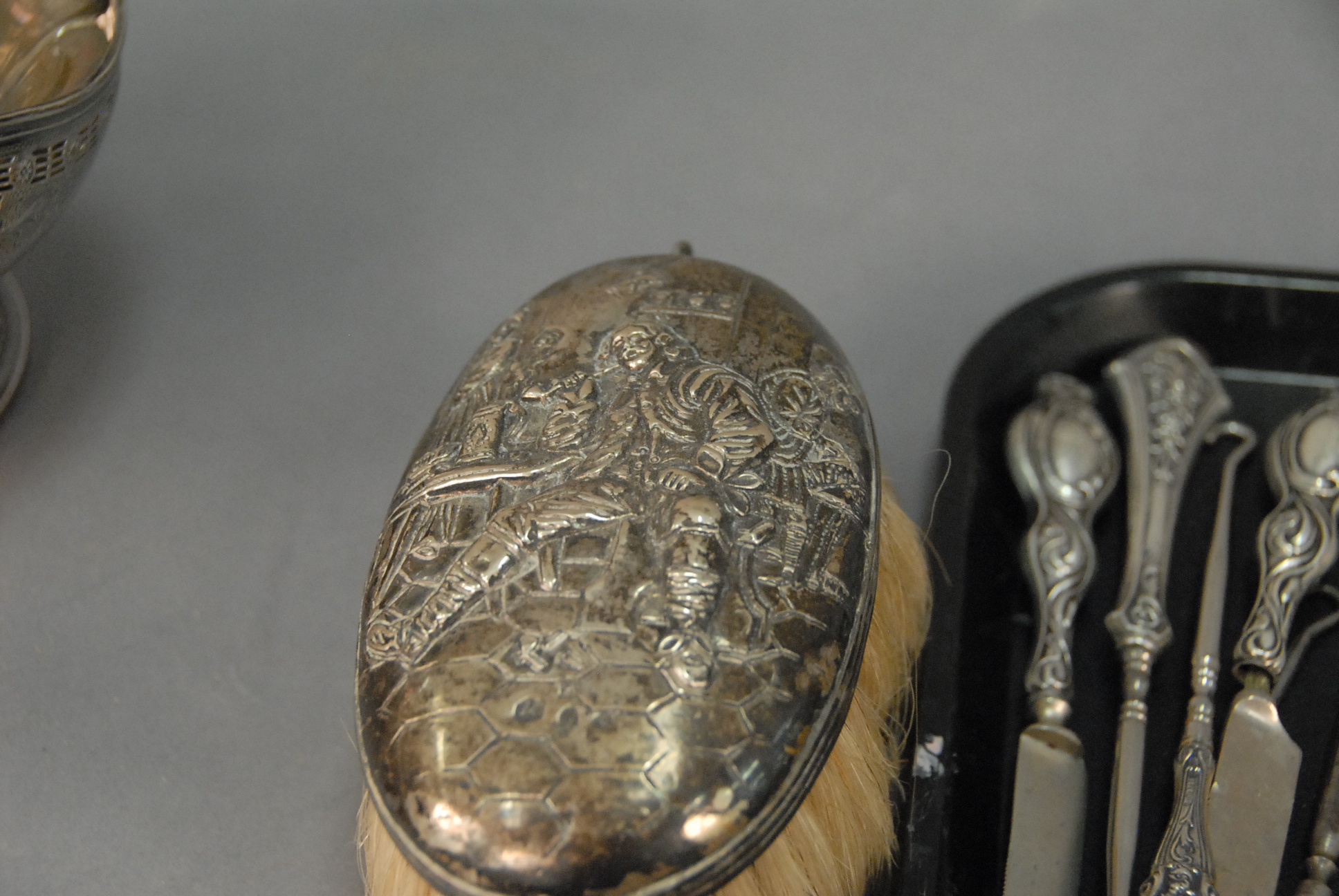 Group of 16 sterling cups without liners, along with 13 weighted handles and weighted brush, 12.8 t oz. weighable silver.