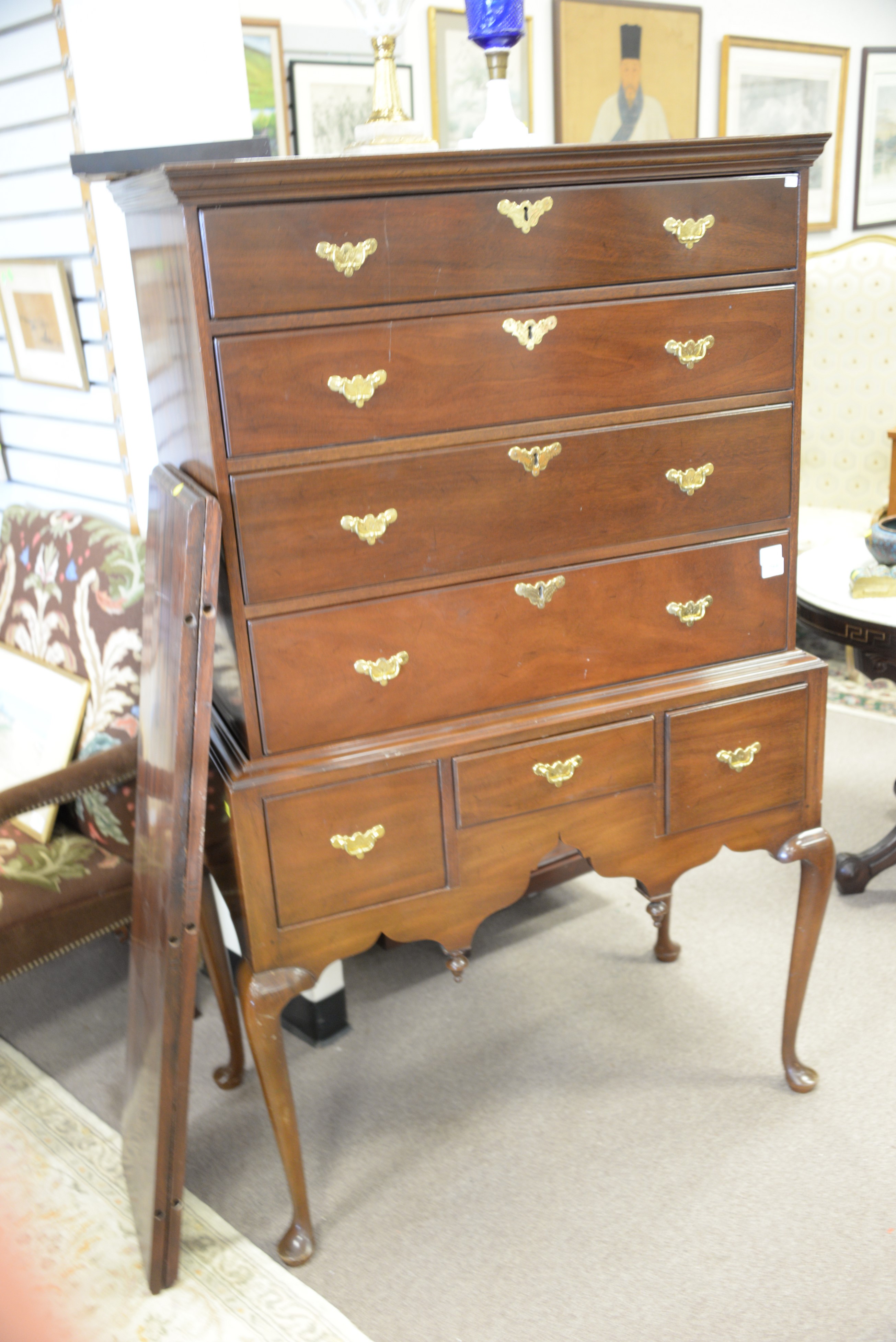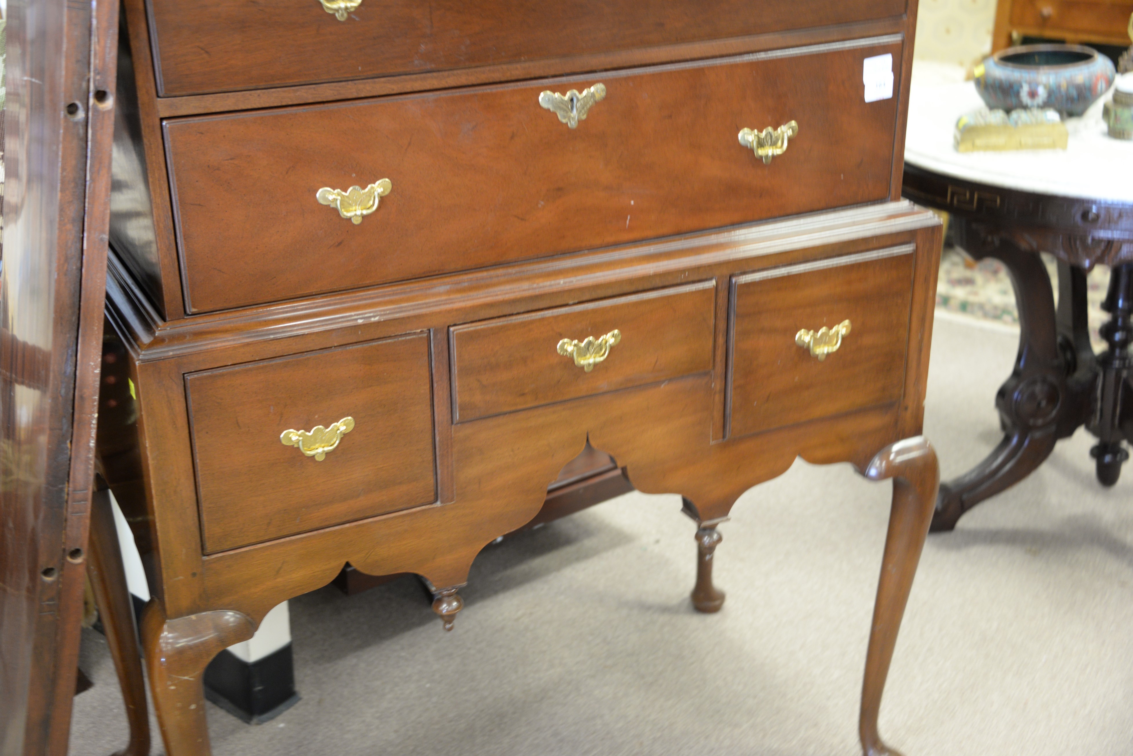 Lot 164: Kittinger Williamsburg mahogany Queen Anne style highboy. ht. 63 in. wd. 38 in. dp. 20 1/2 in.
