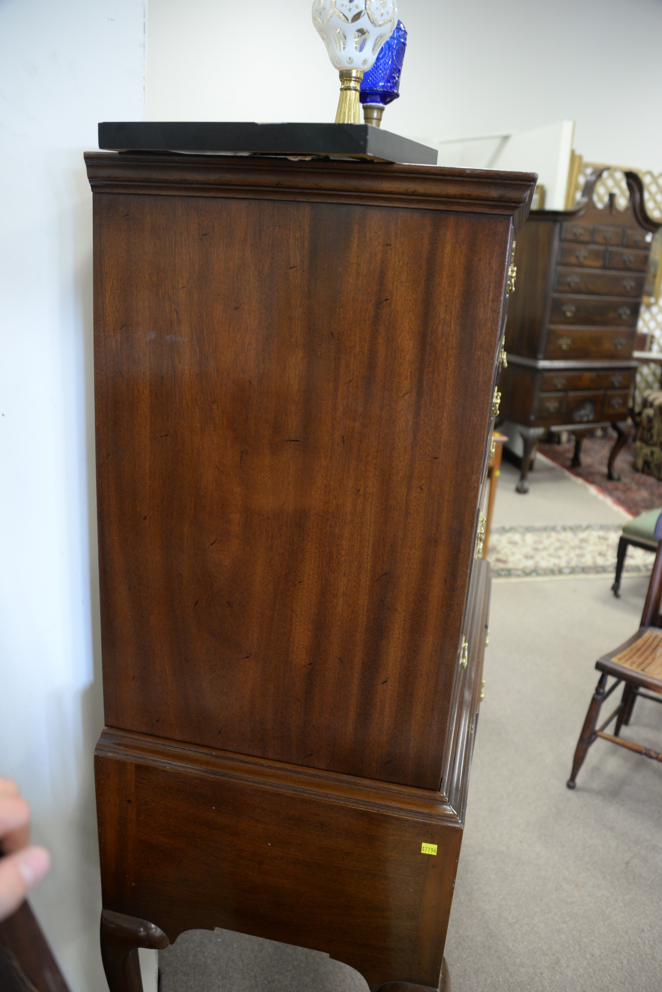 Kittinger Williamsburg mahogany Queen Anne style highboy. ht. 63 in. wd. 38 in. dp. 20 1/2 in.