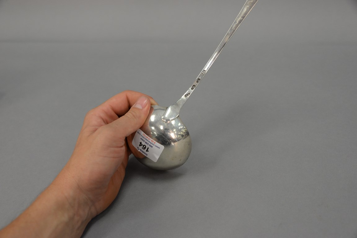 Large coin silver ladle, lg. 13 in. 5.1 t oz.