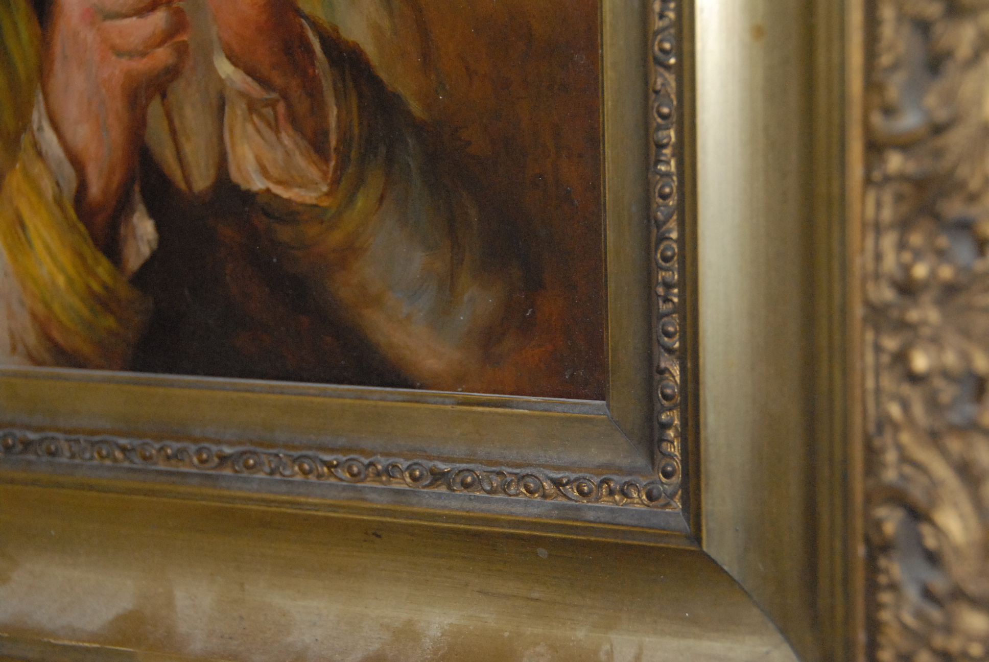 MR. HERRICK CHRISTMAS 1894 oil on artist board signed lower right E. Webb 12 1/2 x 10 1/4