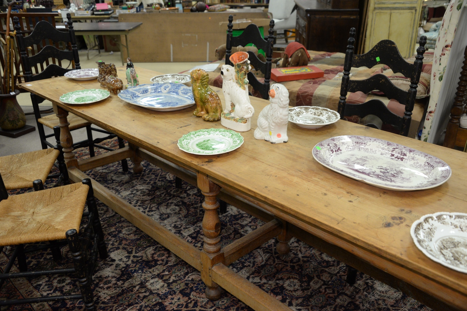 Lot 164: Oak Refectory Table, now with Pine Top, restored 17th C. height 31 inches, top 130 x 32 Provenance: The Estate of Diana Atwo…