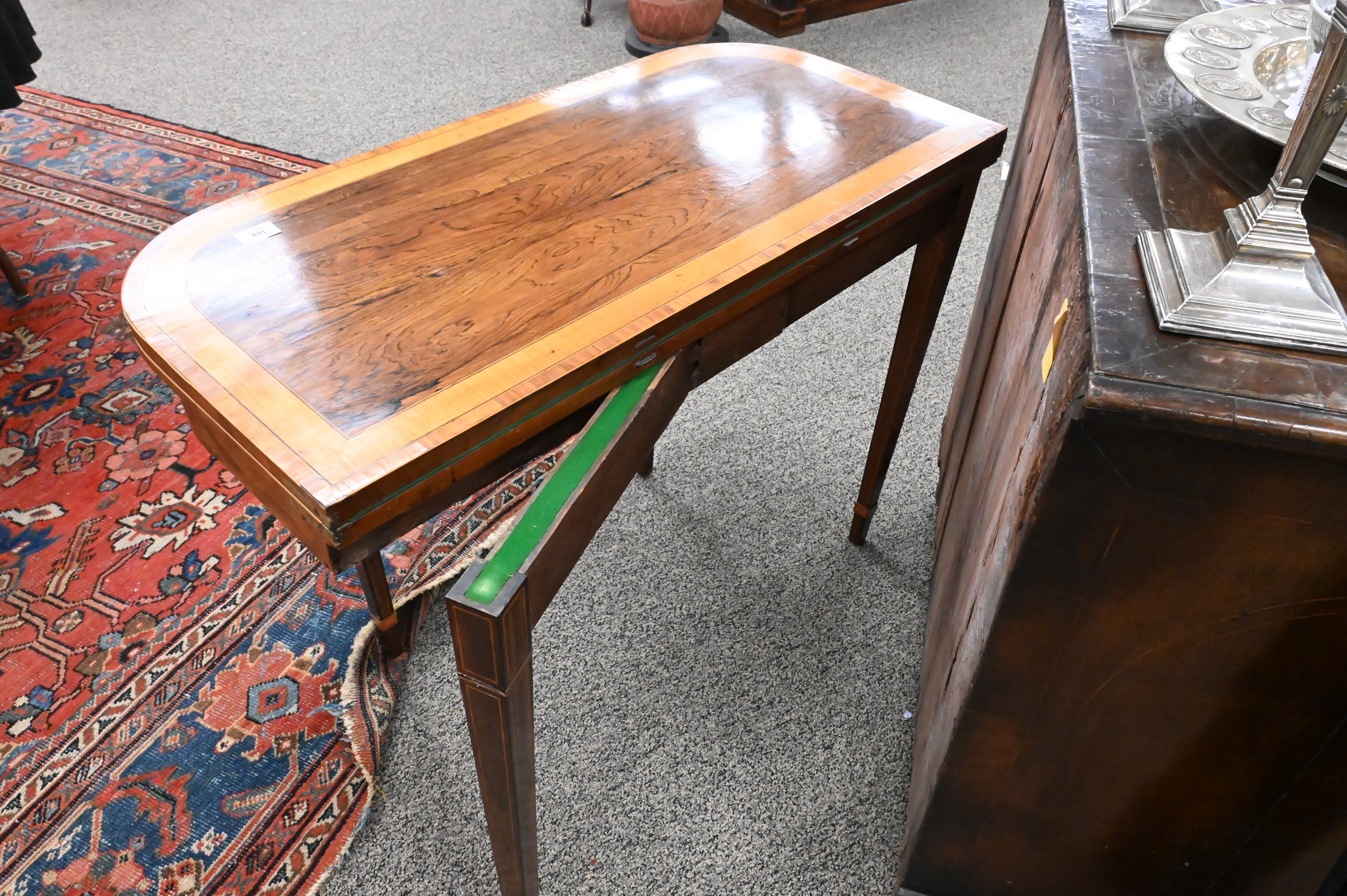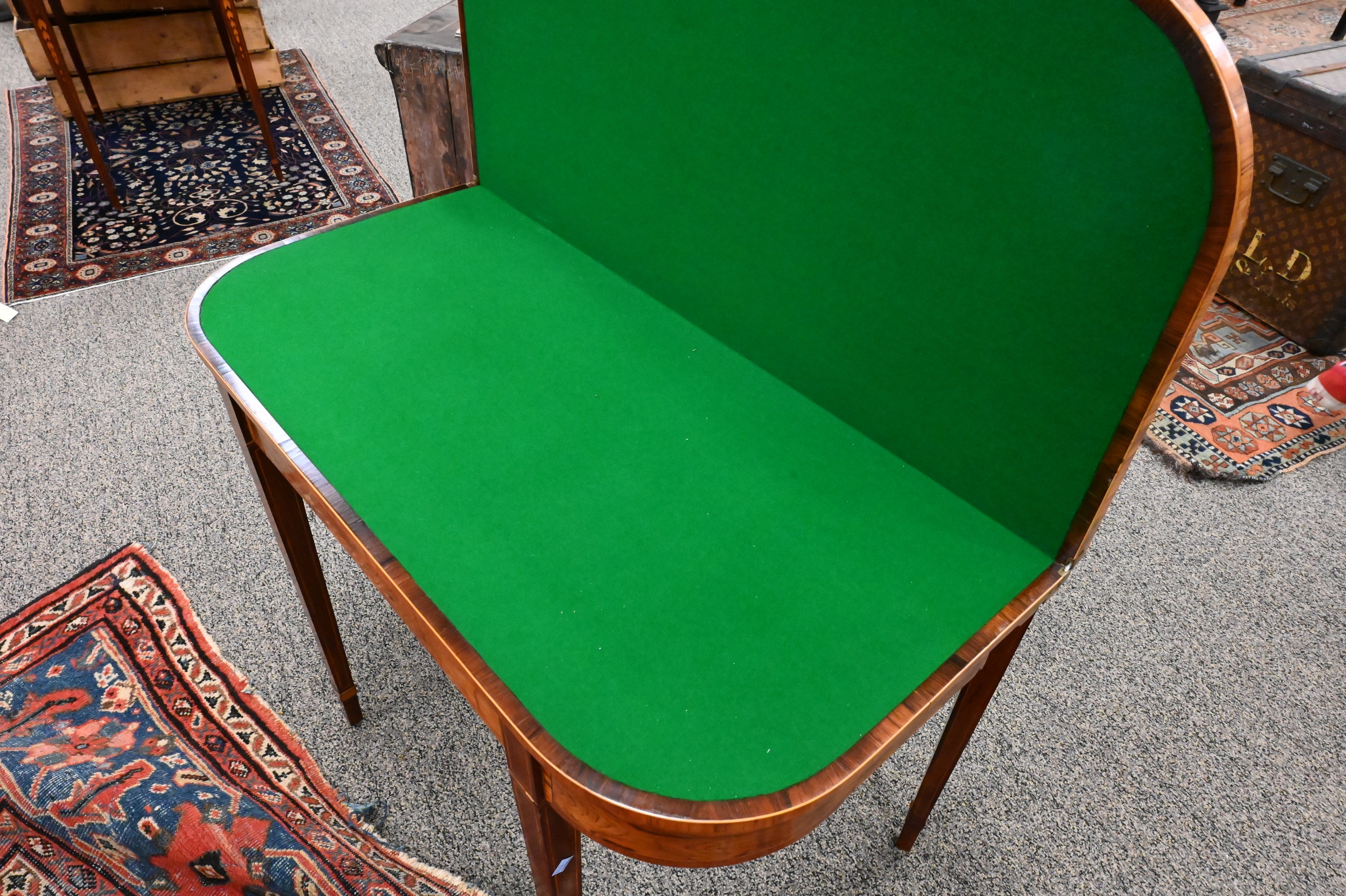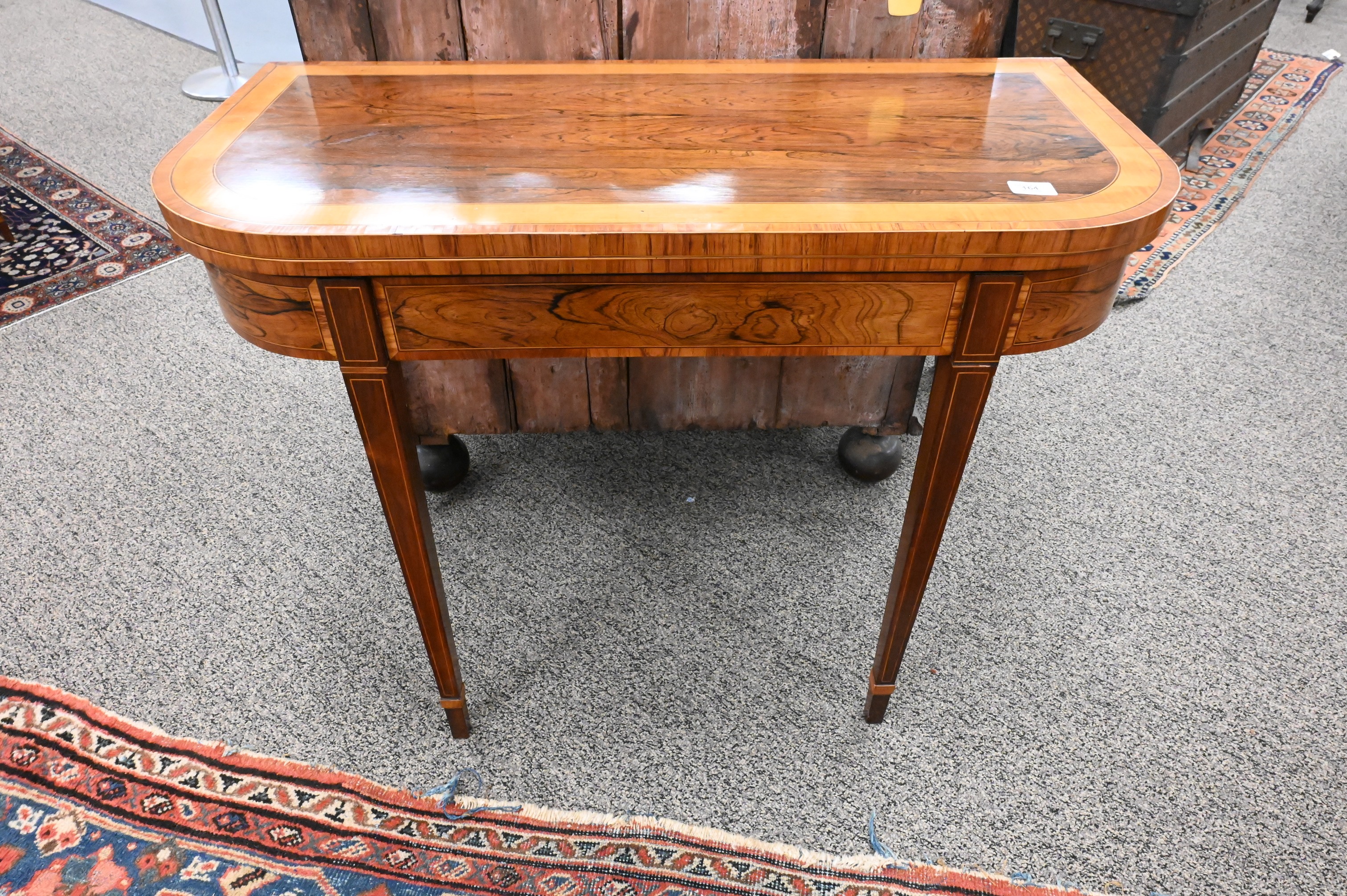 having banded satinwood top, opening to felt interior, all on line inlaid square tapered legs, English circa 1800, three small lines of veneer missing