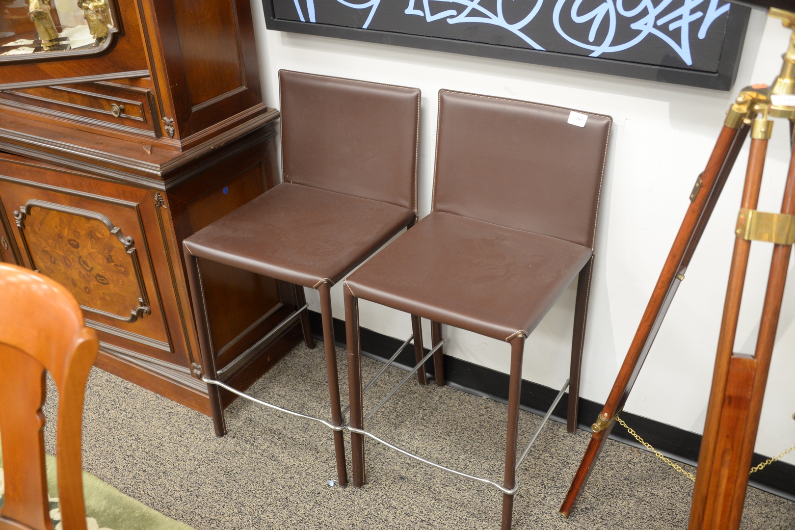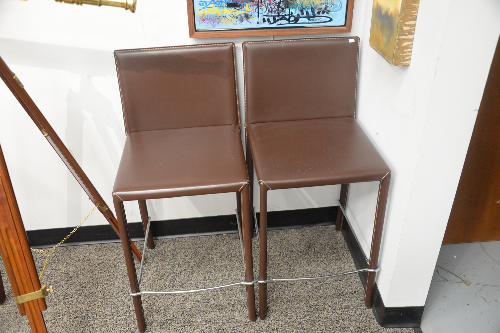Lot 164: Set of Four Italian Leather Barstools, seat height 24 inches, height 35 1/2 inches. Provenance: From the Robert Cerciello Collection, West Hartford, Connecticut.