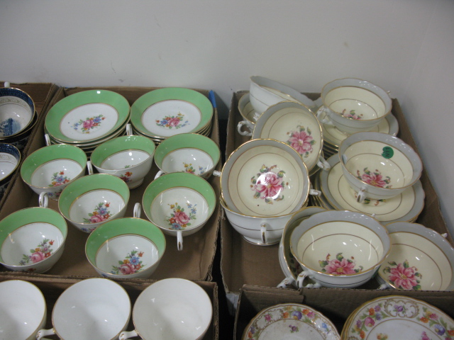 Six box lots of mostly cups and saucers including Bavarian Dresden style.