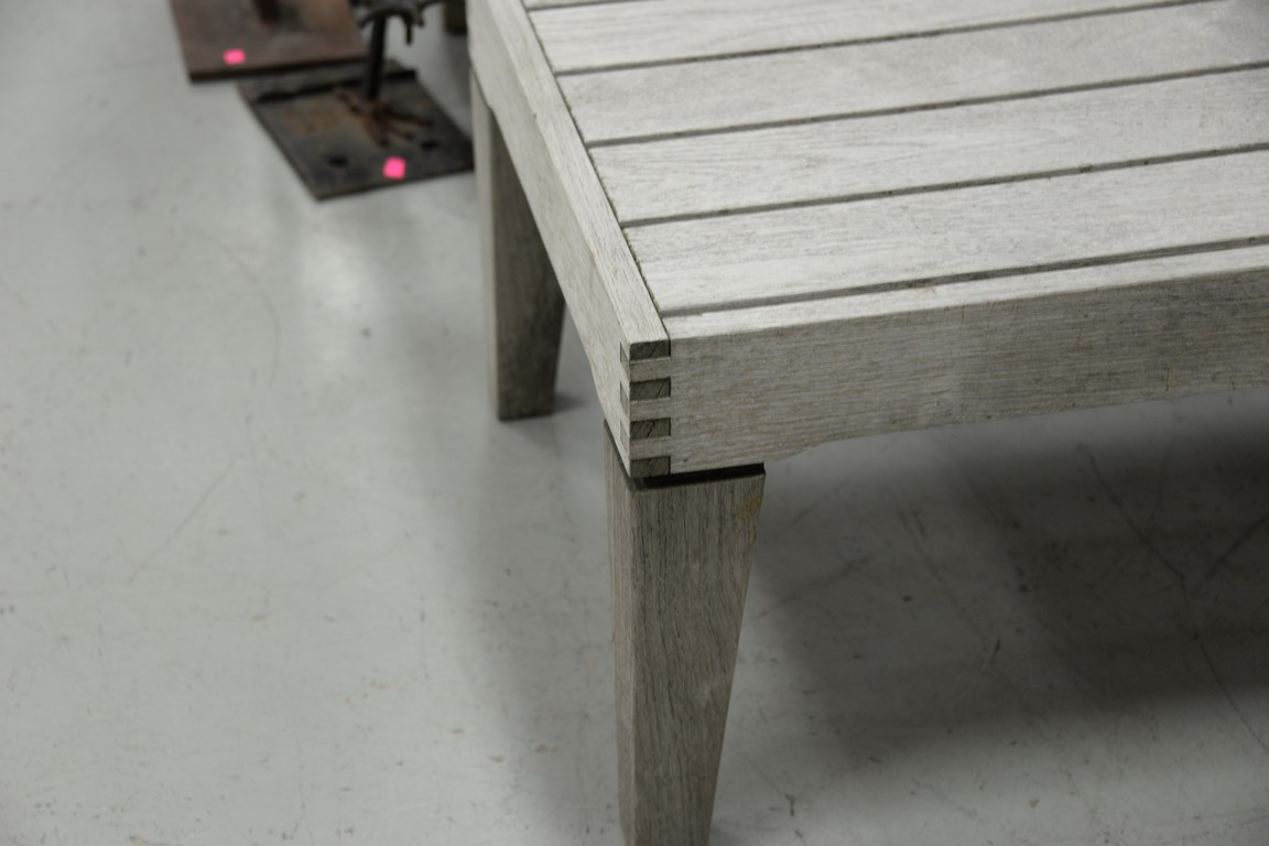 Smith and Hawken teak coffee table. ht. 17 in. top: 25 x 48