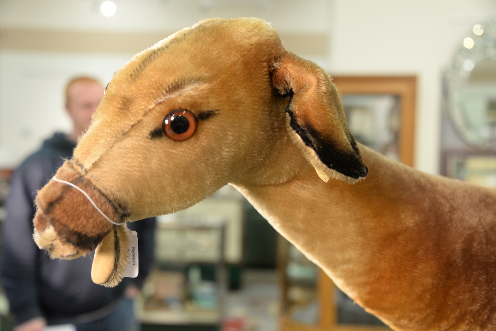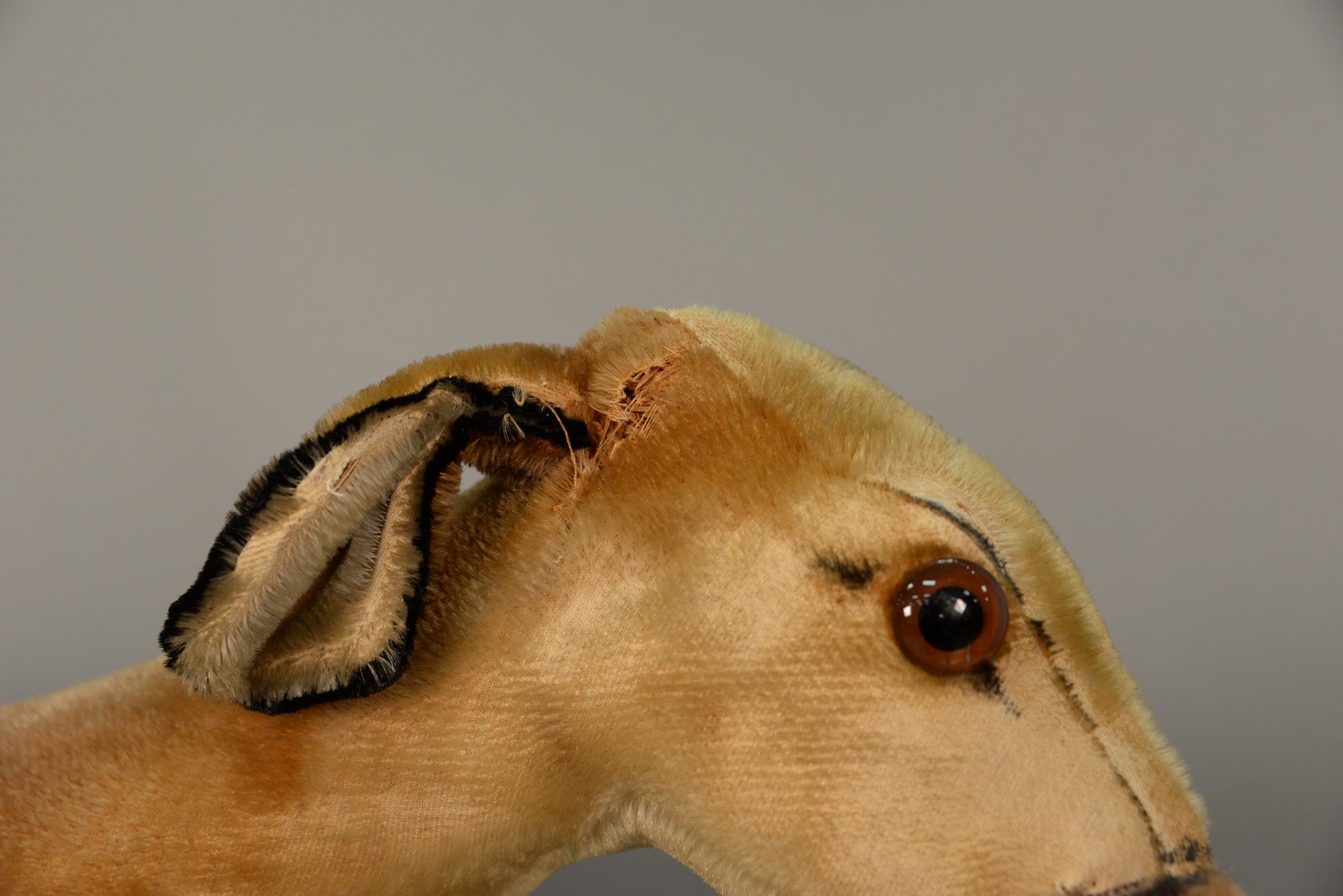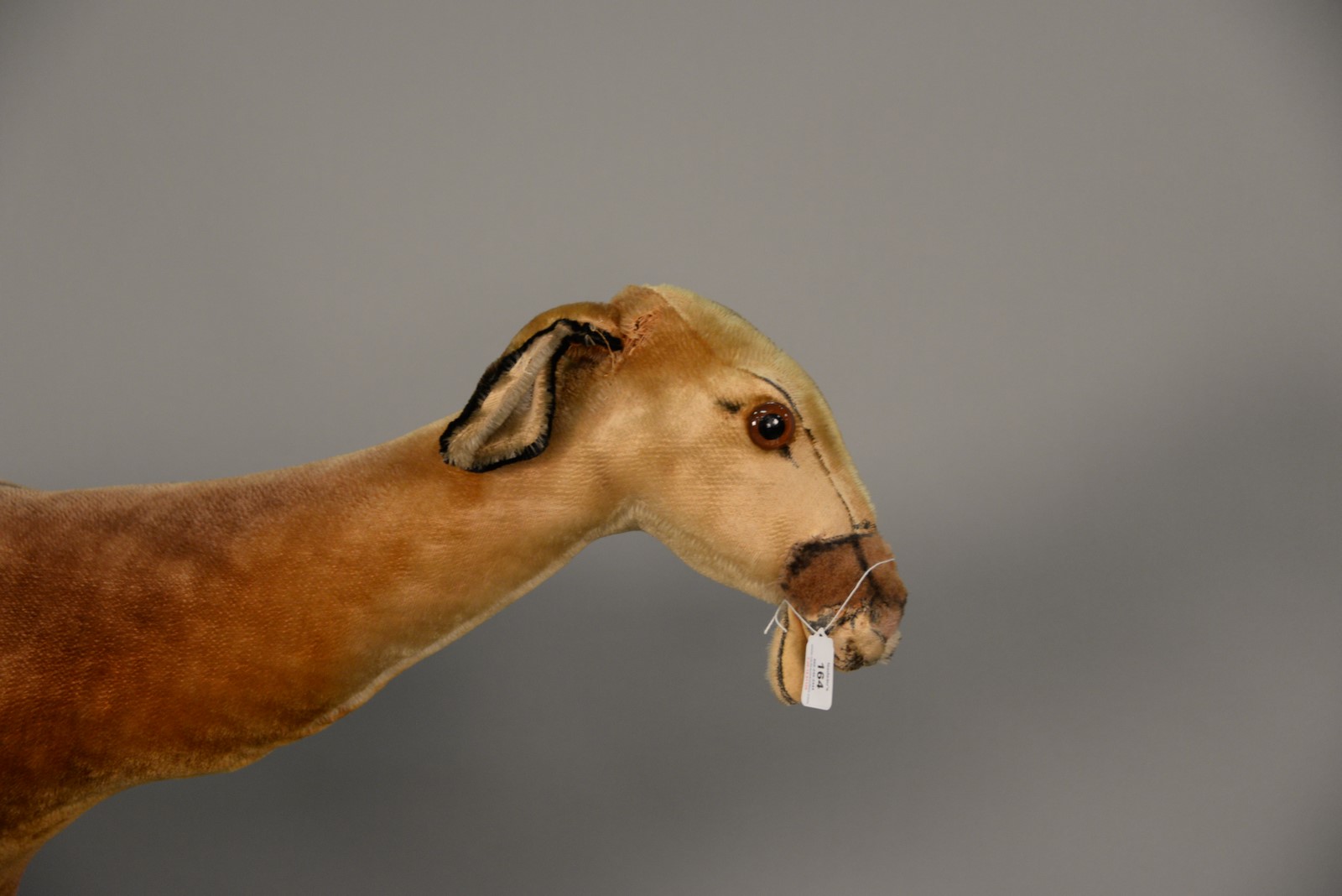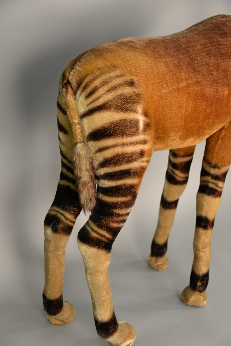 Steiff Okapi with ear tag ears are in very bad condition. ht. 37 1/2 in. lg. 45 in.