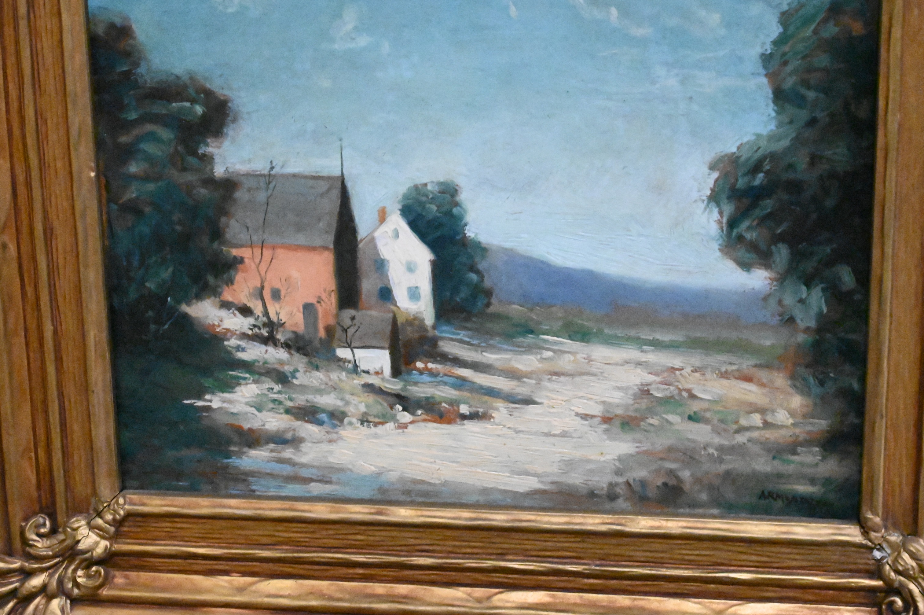 Impressionist landscape with houses and trees