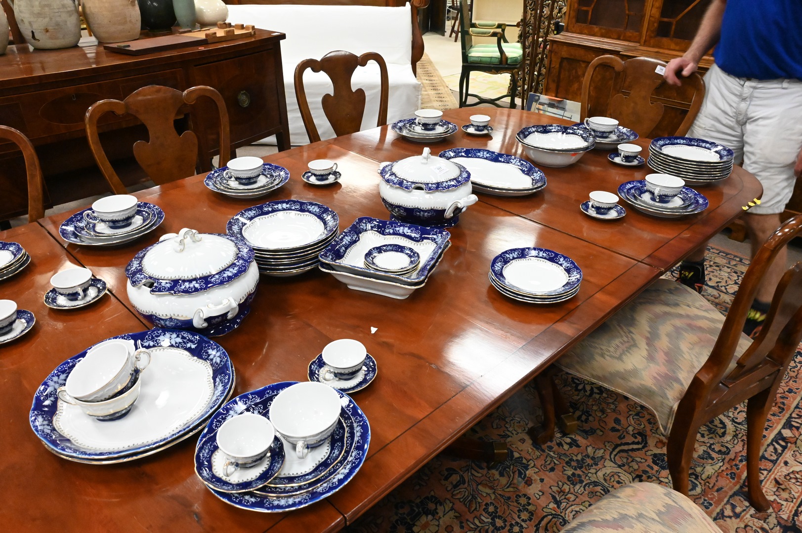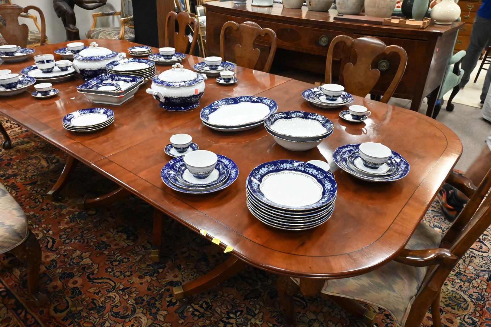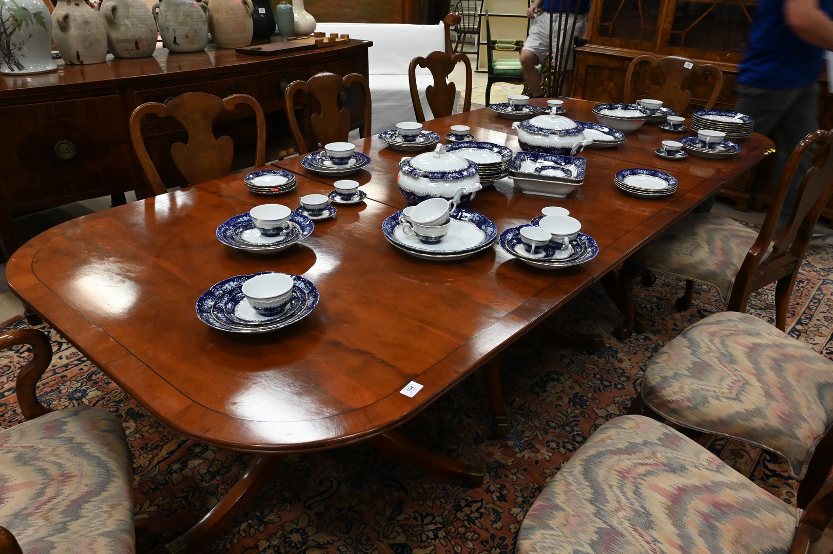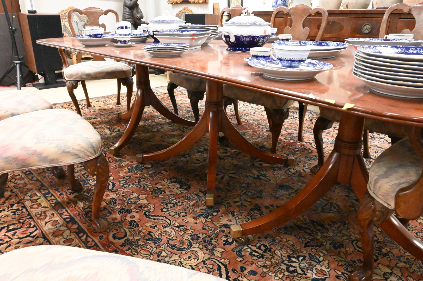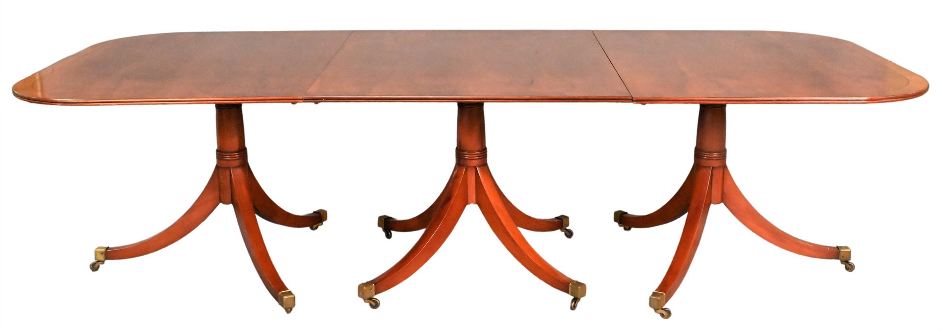 Triple Pedestal Dining Table, along with two 18 inch leaves, top 48″ x 4109″, total open with leaves 48″ x 145″.
