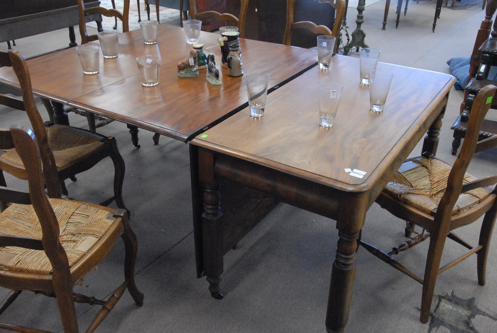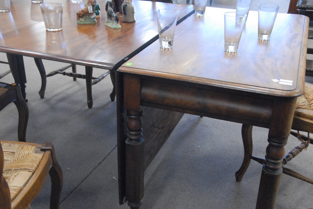 Lot 164A: Two part Sheraton drop leaf dining table, wd. 49in. open lg. 47in. closed lg. 24in., total open 94in.