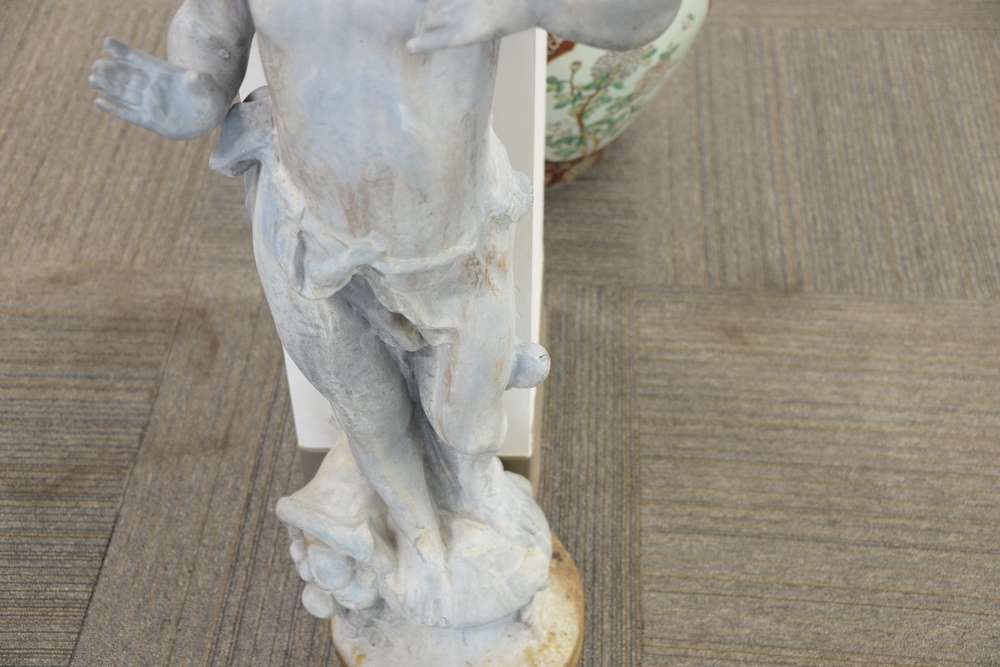 Lead Outdoor Figure of a Girl and Butterfly, height 43 inches.