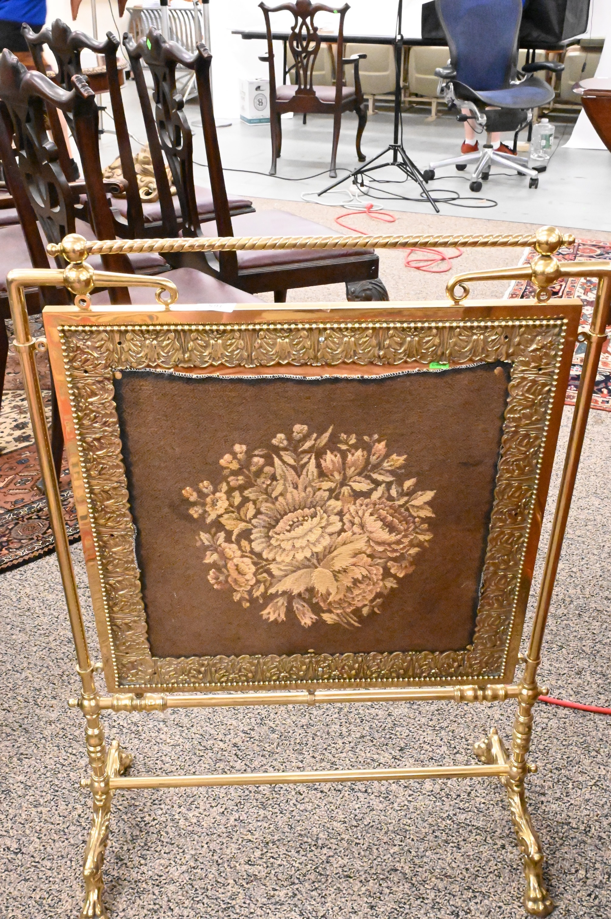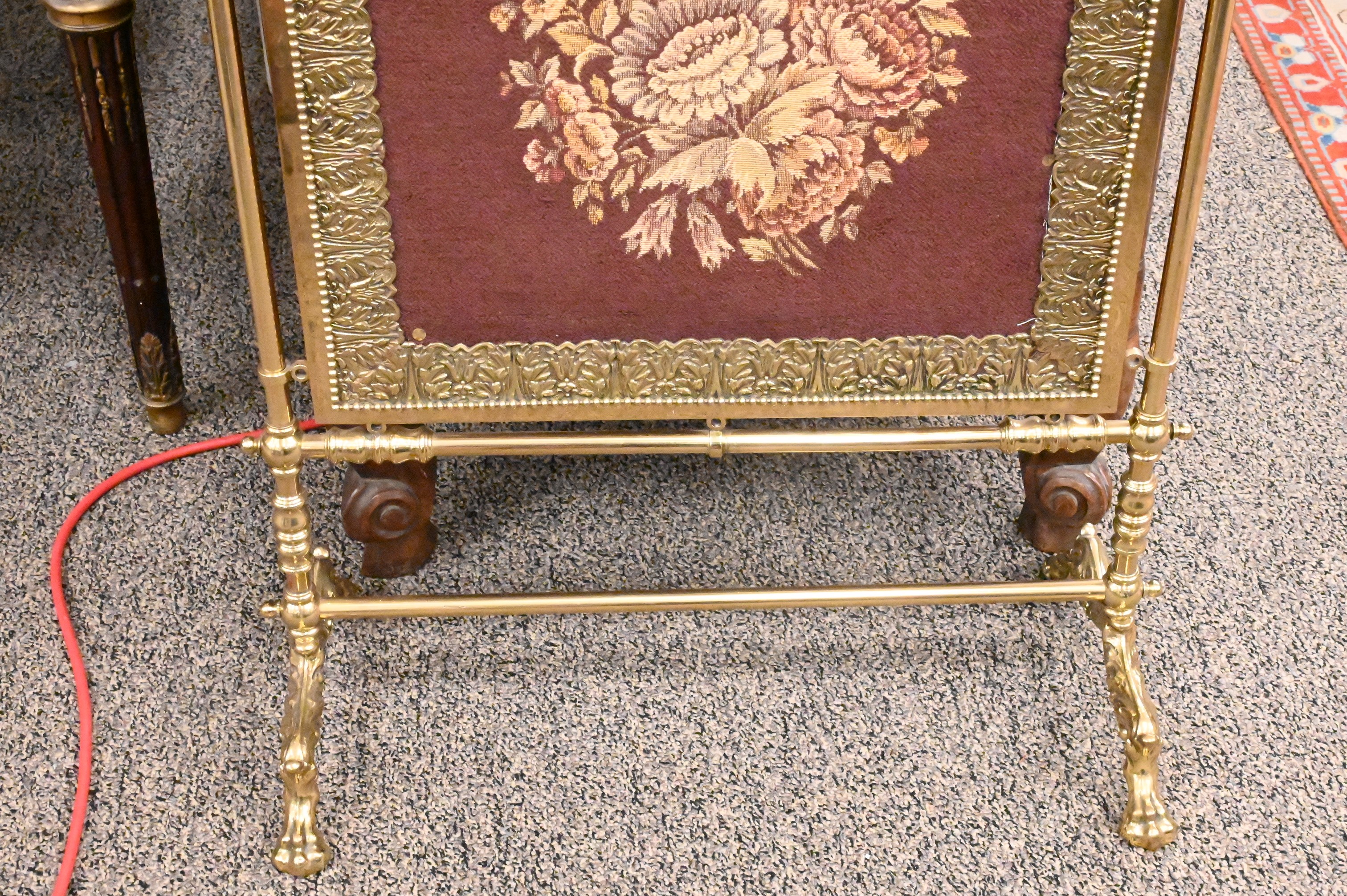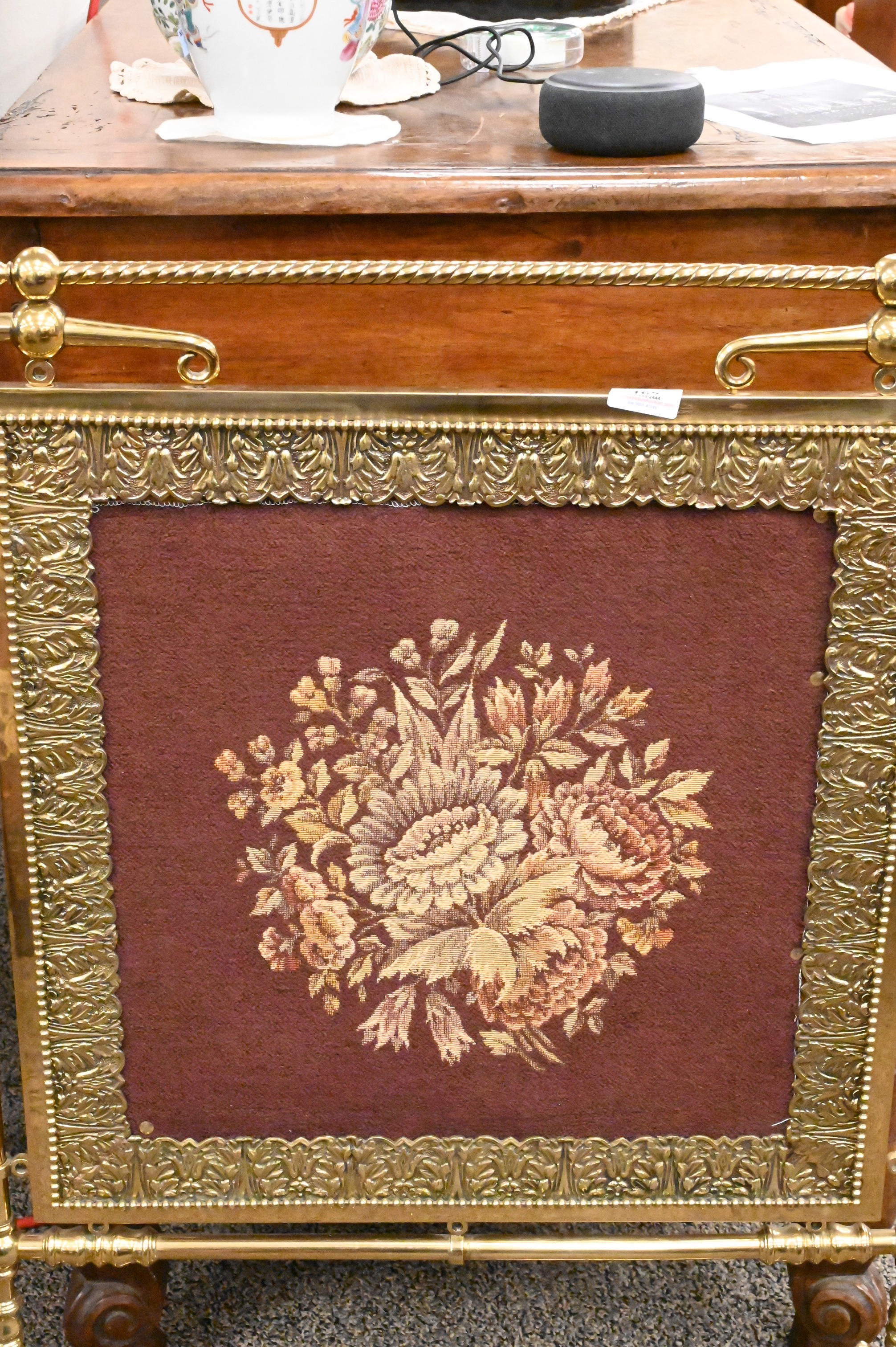 Brass Fire Screen, with tapestry style panels, height 35 inches