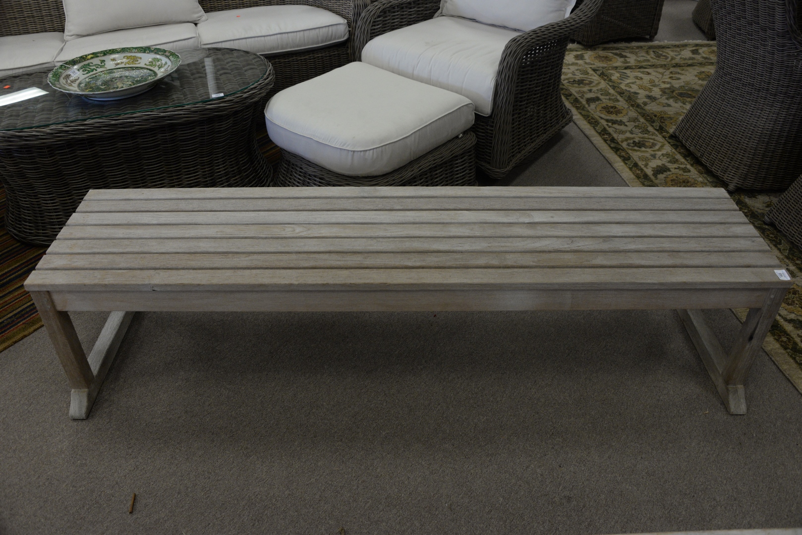 Lot 165: Kingsley Bate Teak Bench, height 16 1/2 inches, width 17 inches, length 71 1/2 inches.