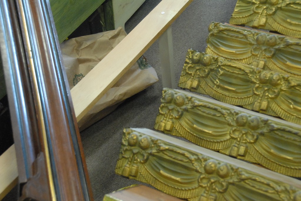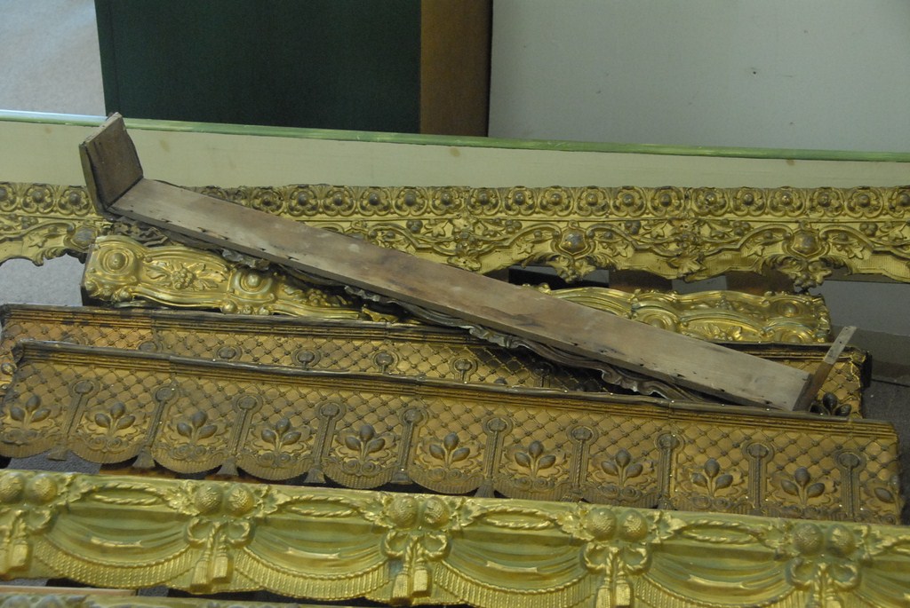 Large group of approximately fourteen Victorian cornices, twelve are embossed brass.