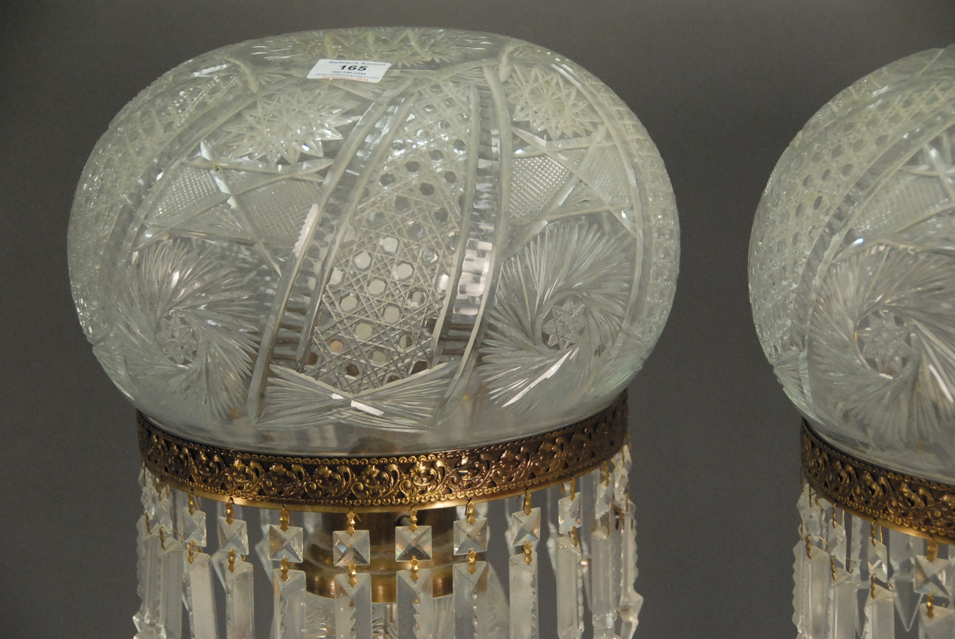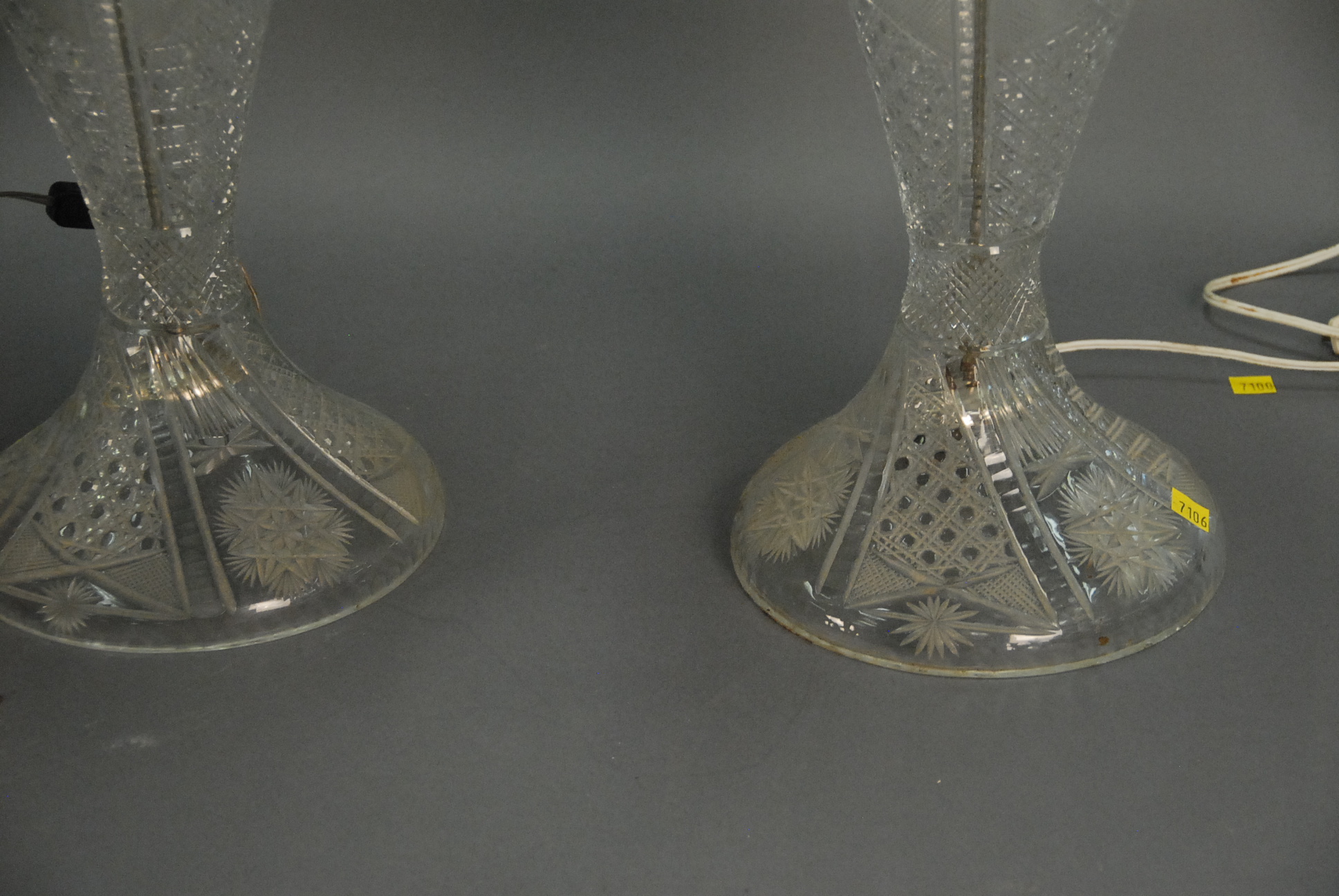 Pair of cut glass table lamps with large mushroom shades, ht. 26in.