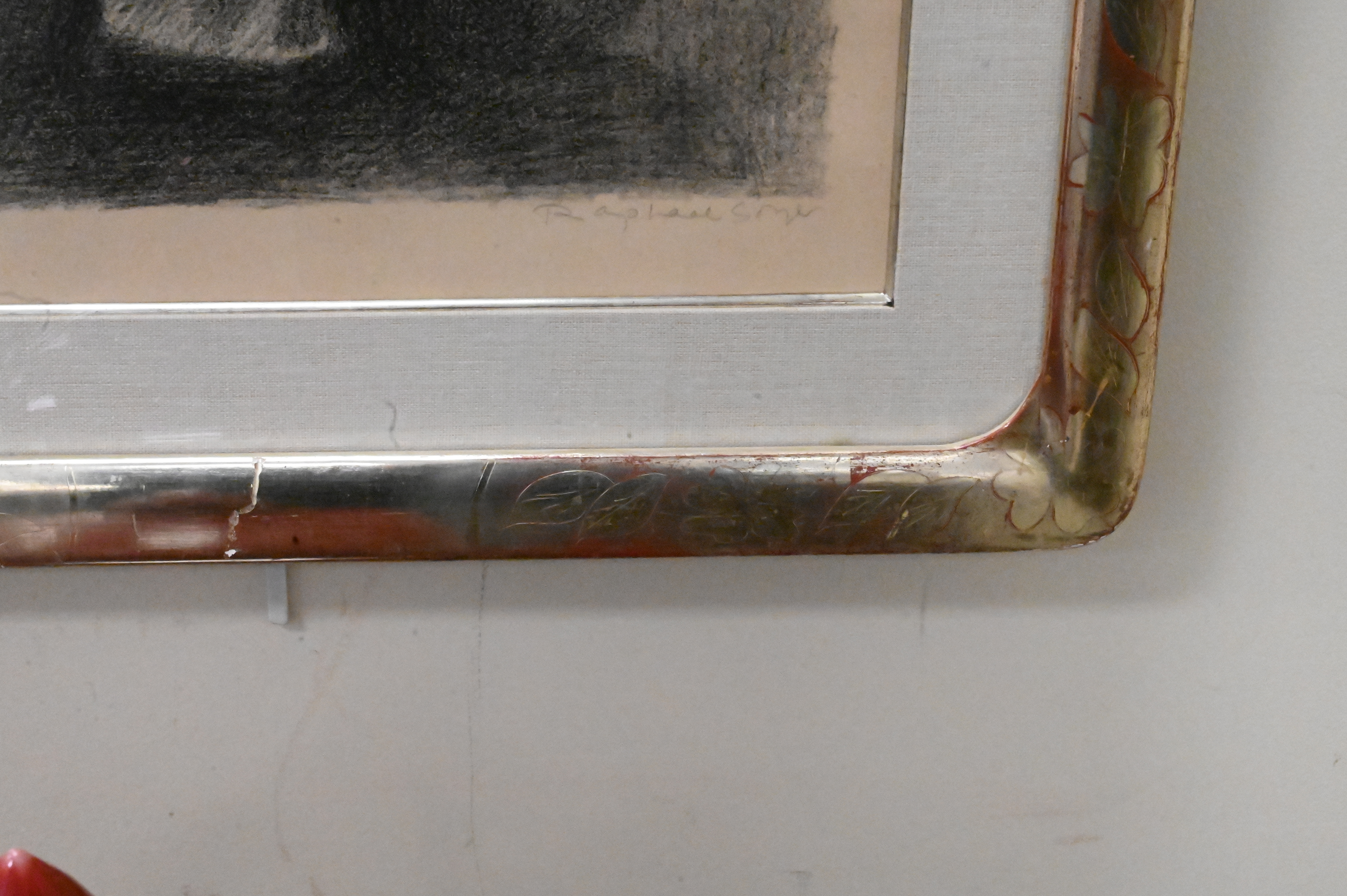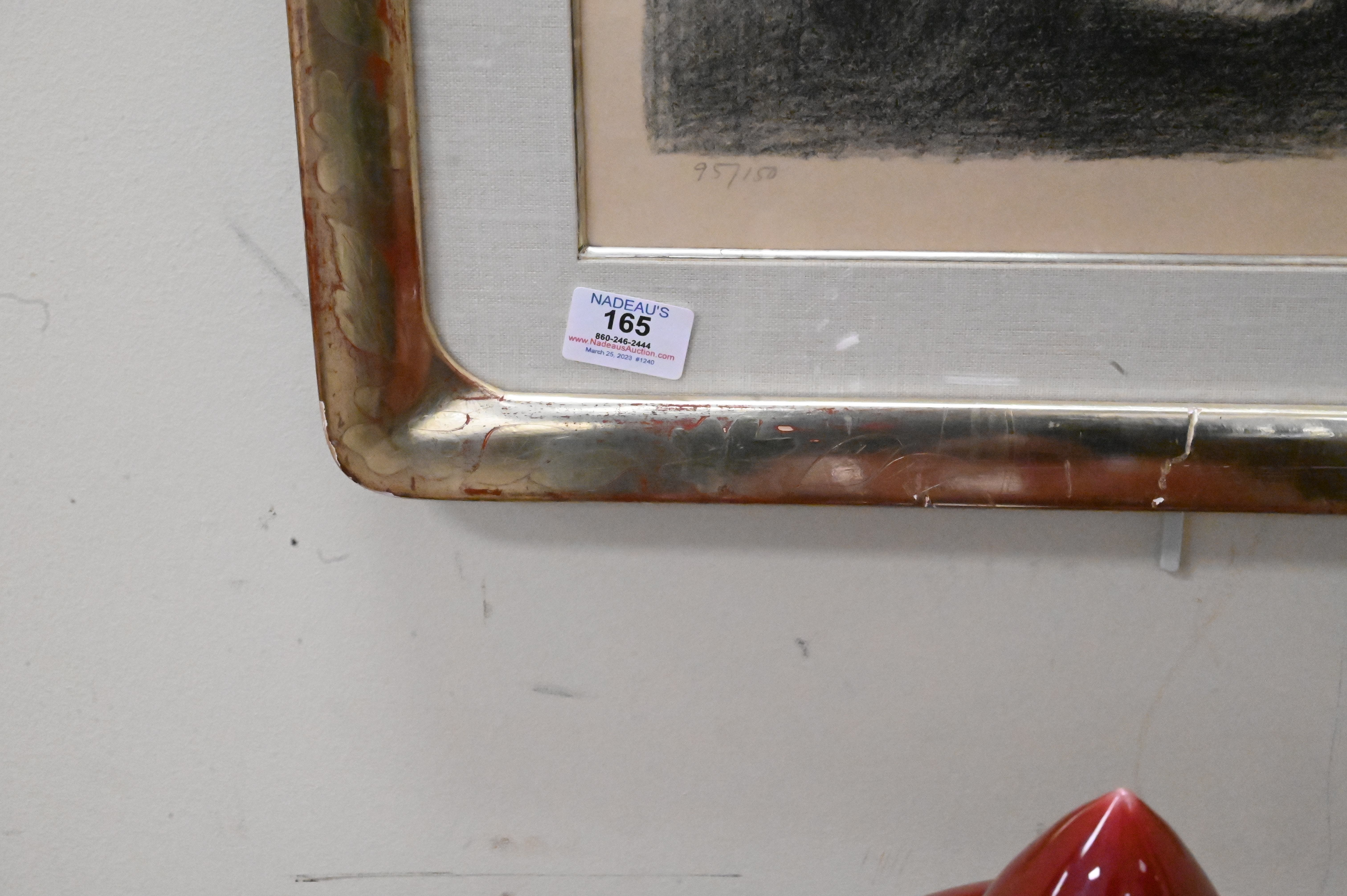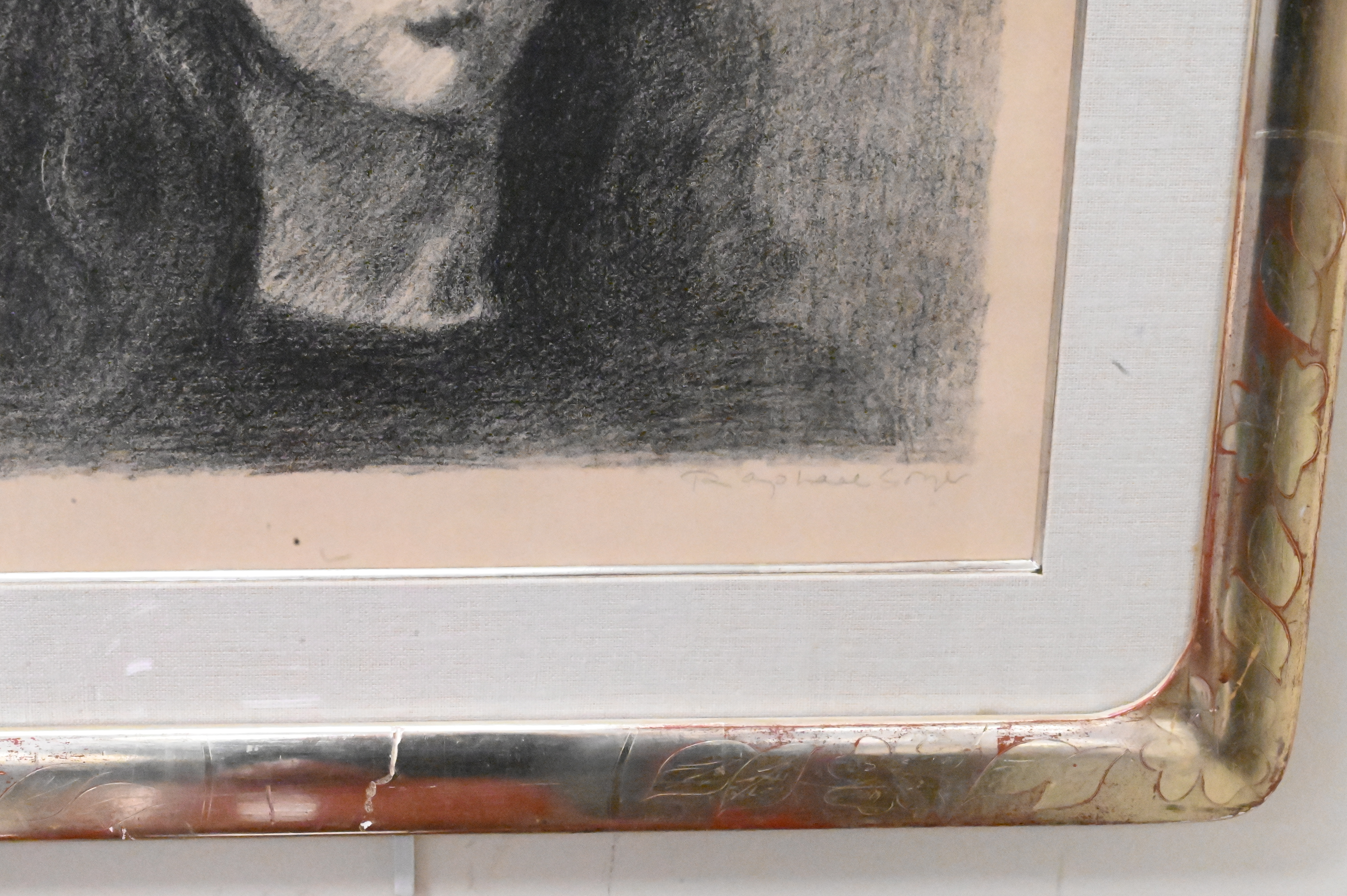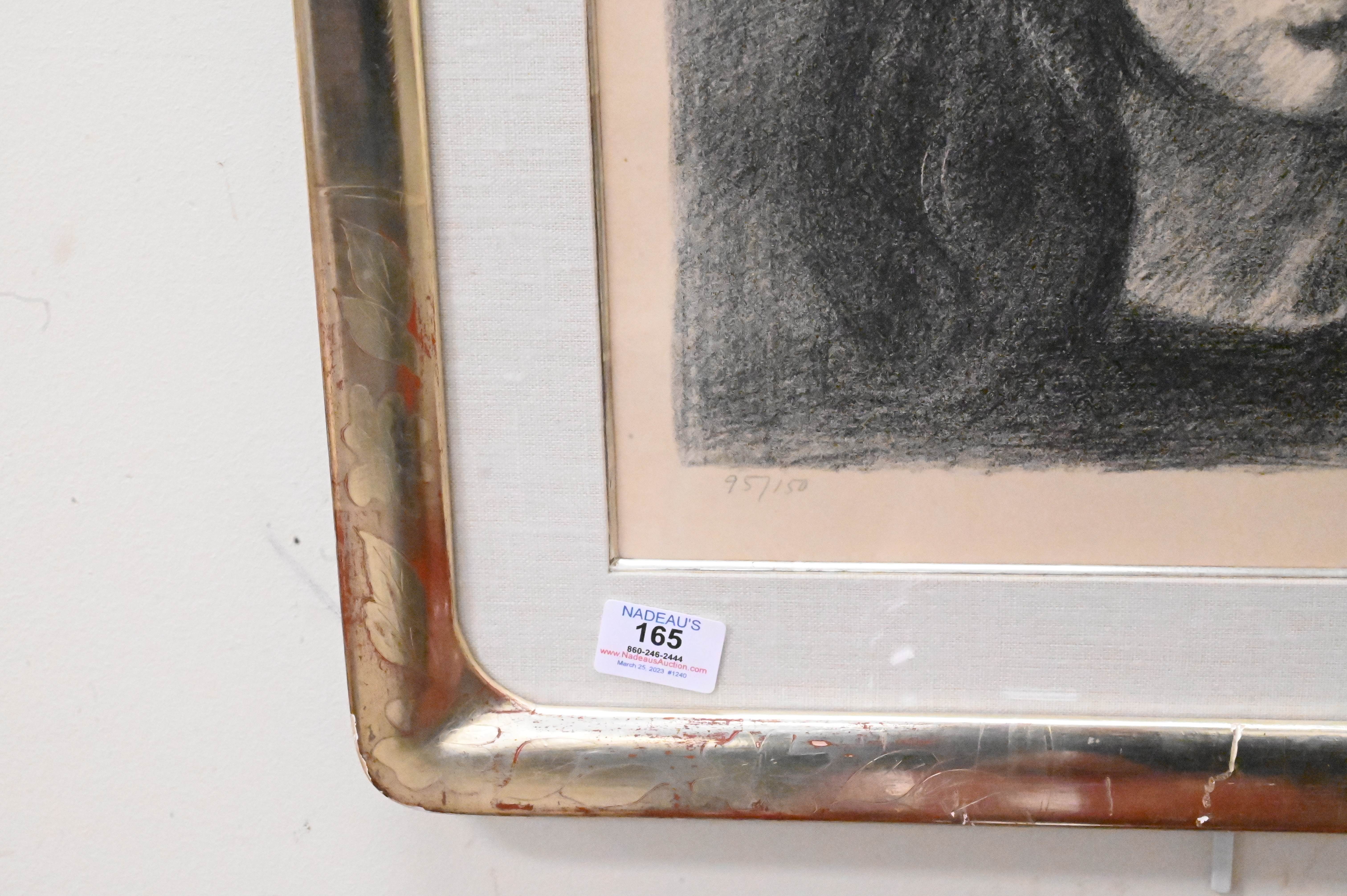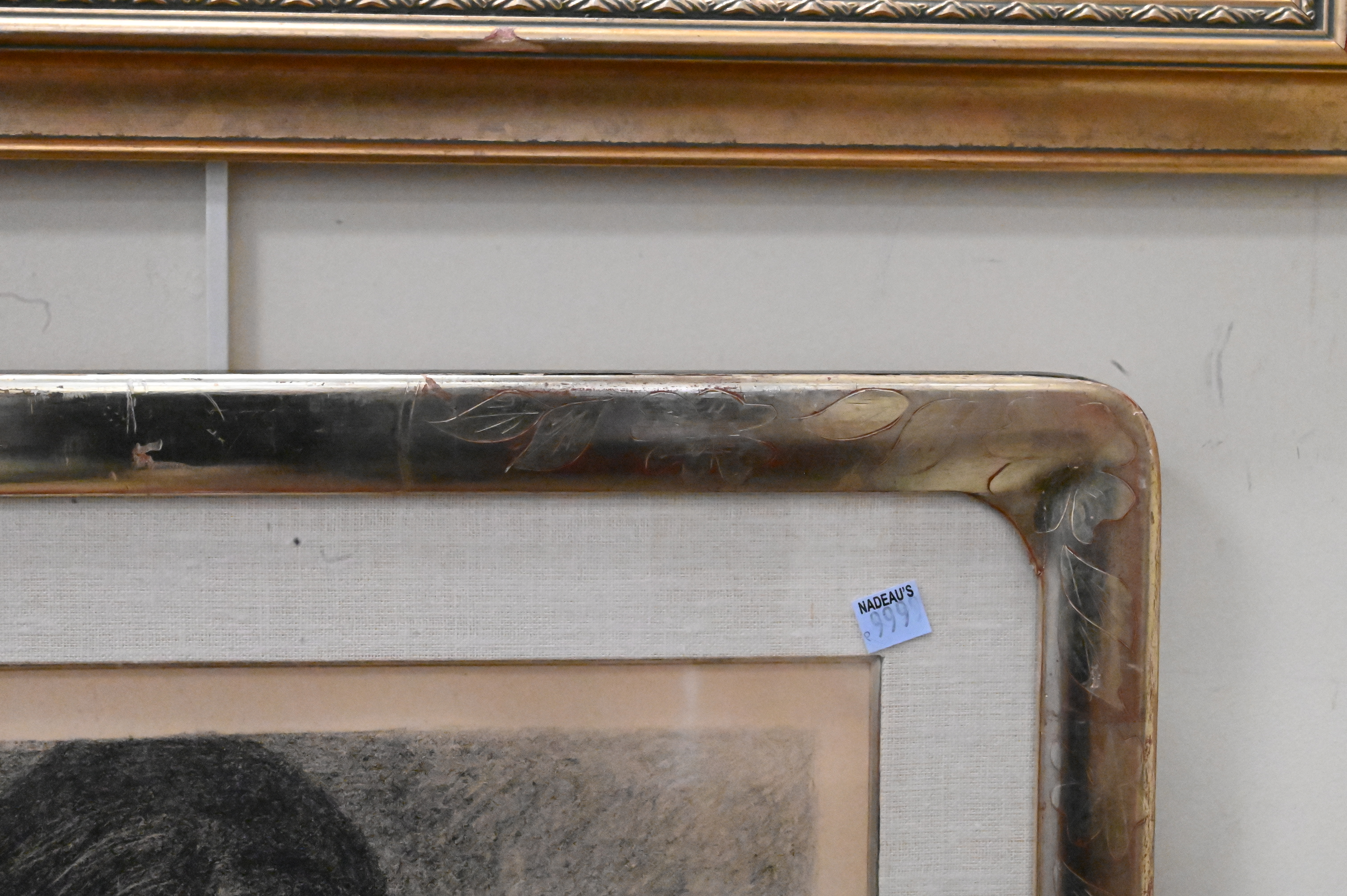 Raphael Soyer Female Study Bust, lithograph, pencil signed and edition numbered 95/150, in an American Arts and Crafts gilt frame, having incised flowers and leaves, possibly Max Kuehne, image size 15″ x 15″.