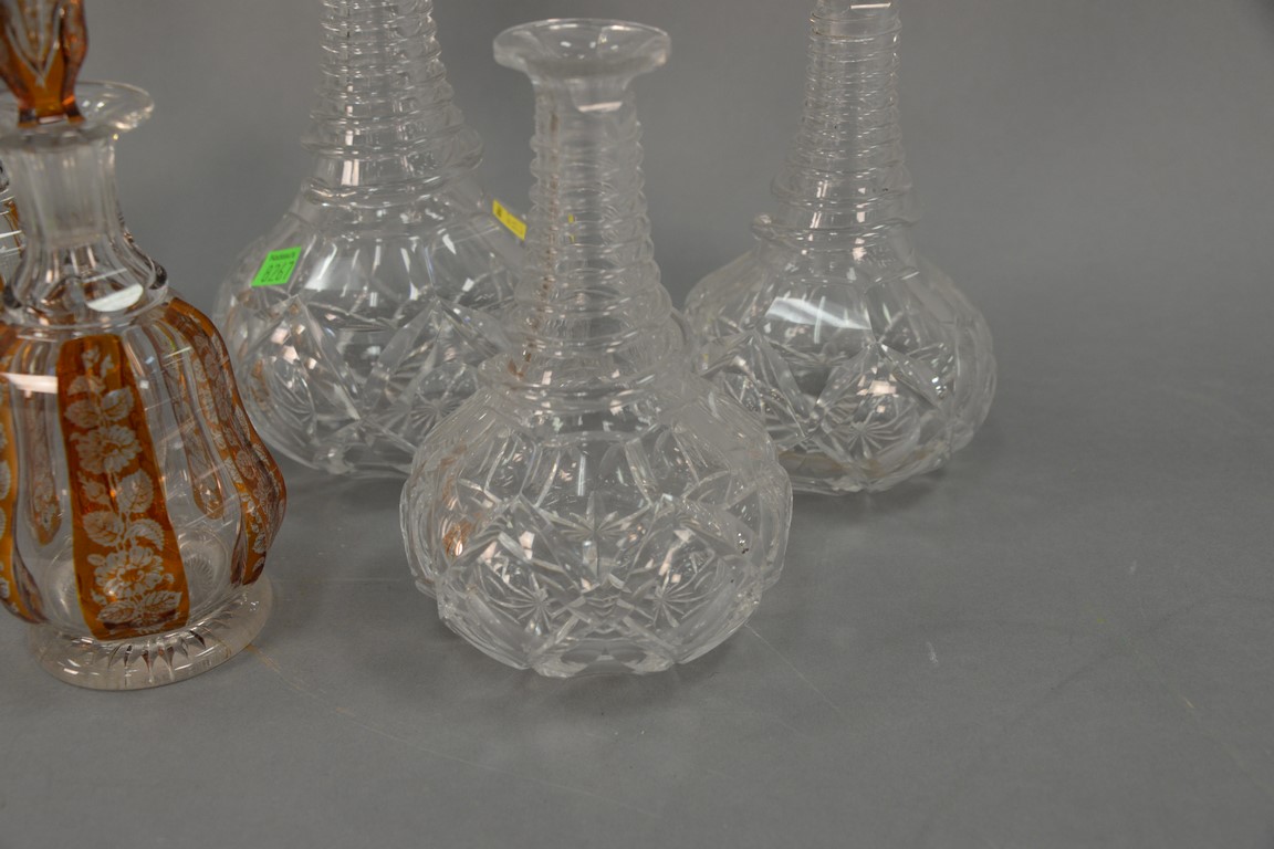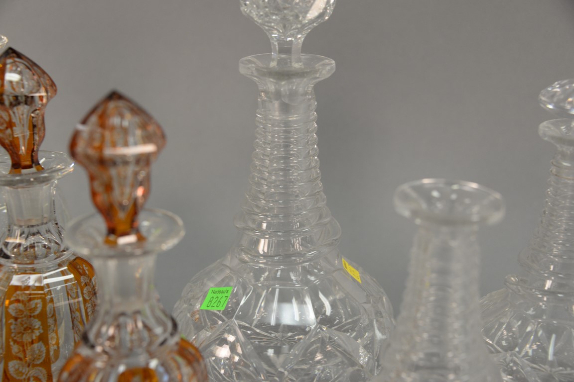 Lot 165: Seven crystal decanters including a set of three with twist glass necks and two pairs of decanters. ht. 7 1/2in. to 11 1/2in.