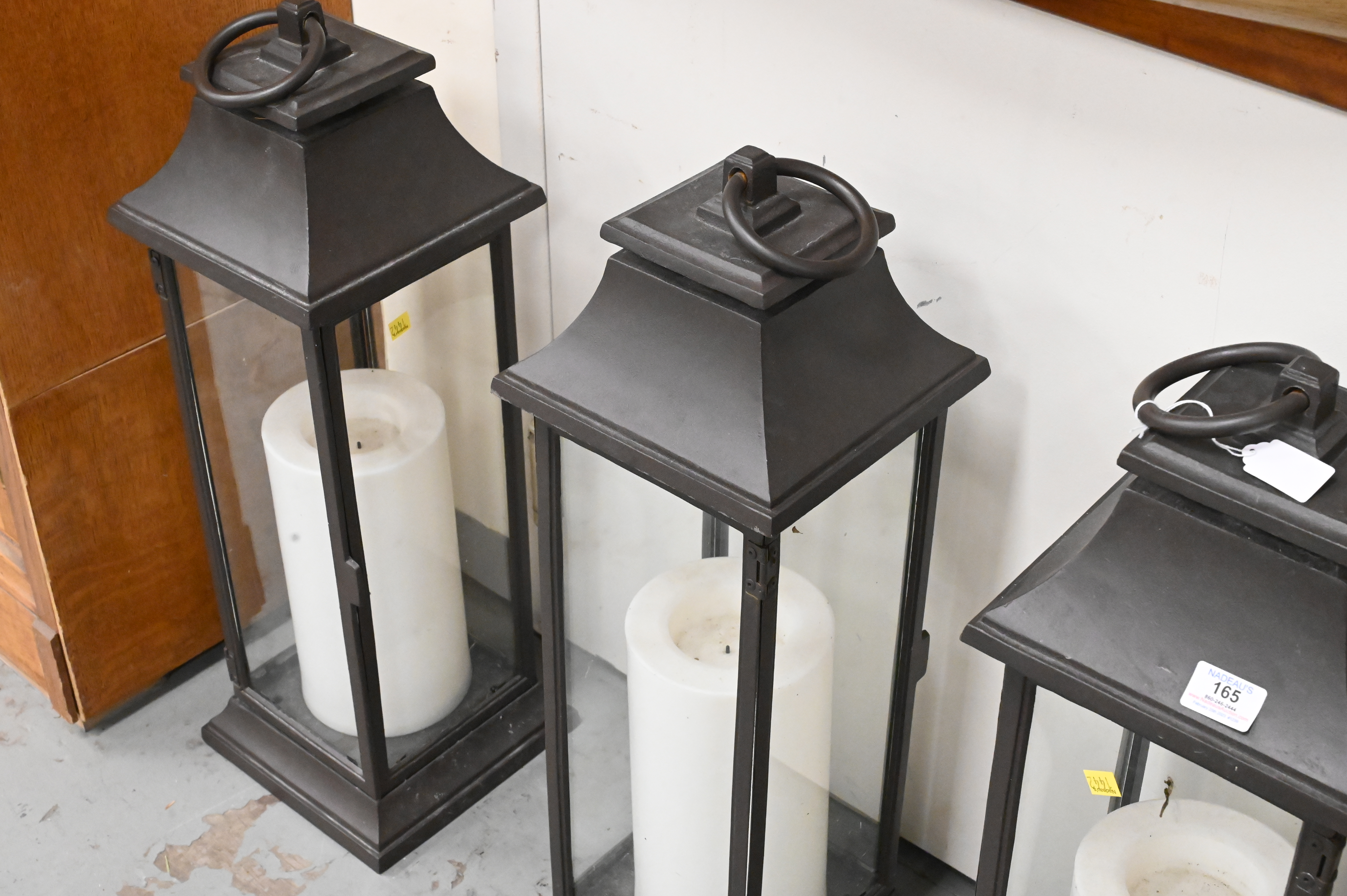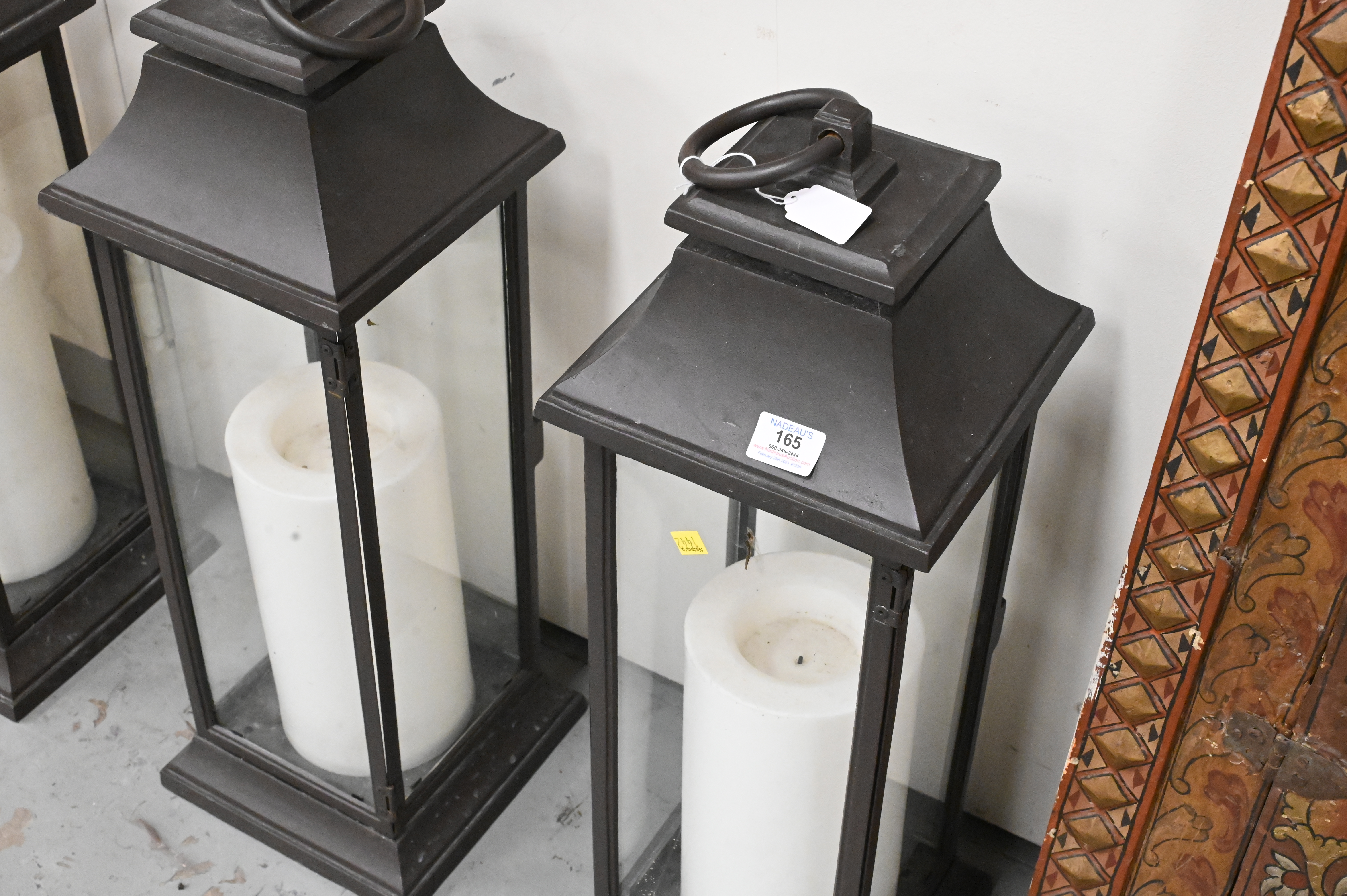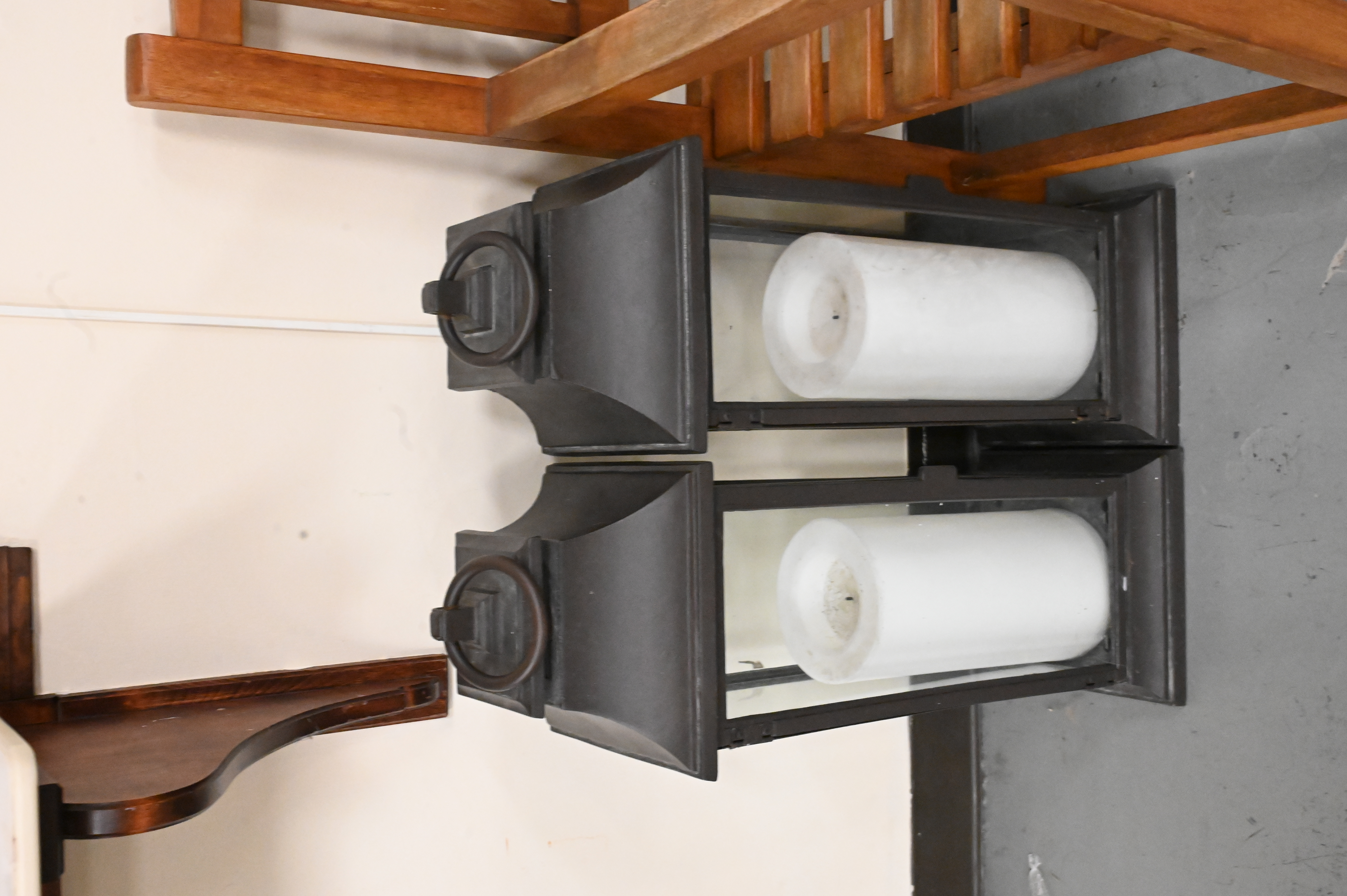 Seven Piece Group, to include five outdoor lanterns, height 29 inches; along with a pair of planters/fern stands, height 13 inches.