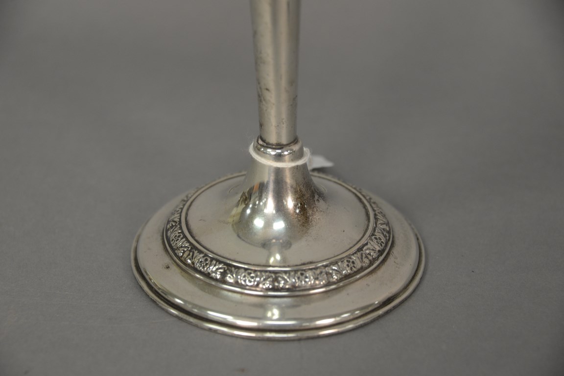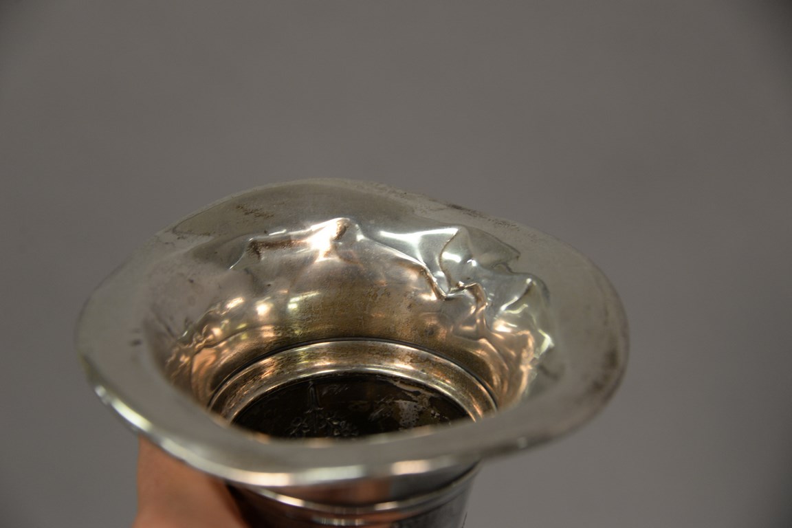 Tall sterling silver weighted trumpet vase, ht. 14 in.