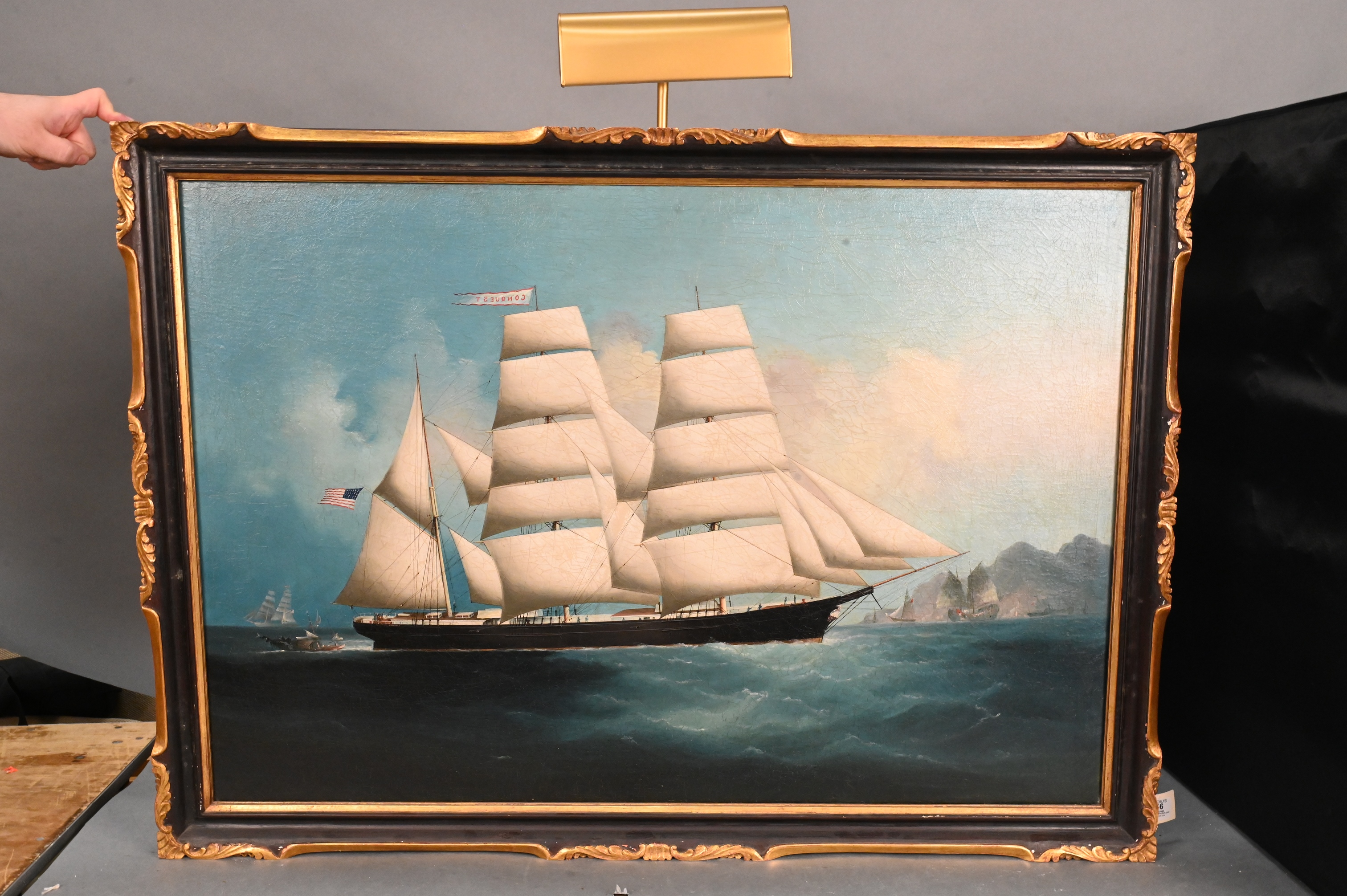 Depicting the American merchant ship “Conquest”