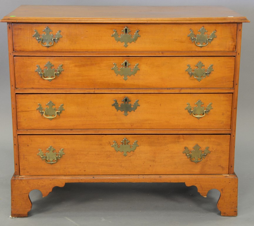 Chippendale four drawer maple chest with bracket feet. ht. 32in., lg. 37in.