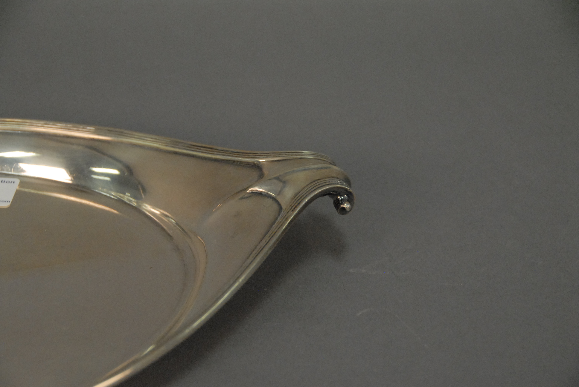 Gorham sterling silver tray, oval with rolled handles, and monogramed. 26.1 t oz.